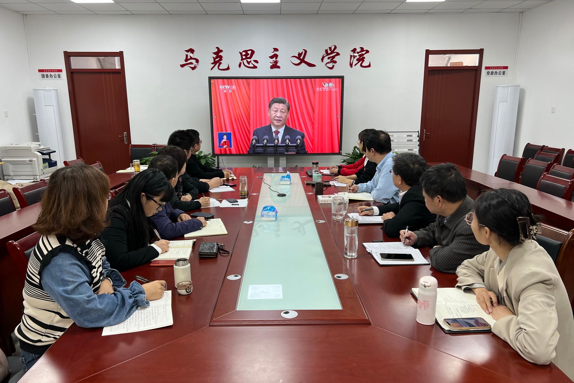 全体成员集中收看了党的二十大开幕会。大家表示,党的二十大是在全党全国各族人民迈上全面建设社会主义现代化国家新征程、向第二个百年奋斗目标进军的关键时刻召开的一次十分重要的大会。马克思主义学院全体师生要深入学习贯彻党的二十大精神,全面贯彻习近平新时代中国特色社会主义思想,大力弘扬伟大建党精神,把学习研究宣传贯彻党的二十大精神作为当前和今后的首要政治任务,努力培养担当民族复兴大任的时代新人。