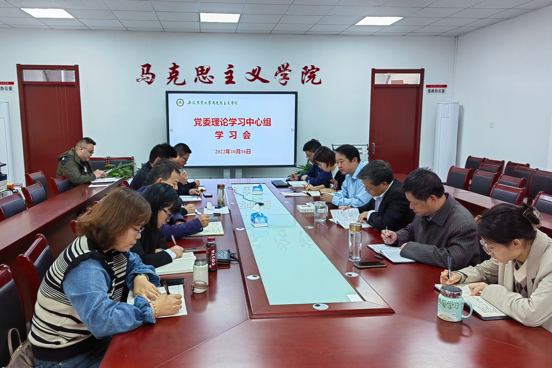 本网讯 10月16日上午,马克思主义学院党委召开理论学习中心组学习会,集中学习习近平总书记最新重要文章、《习近平谈治国理政》第四卷并集中收看党的二十大开幕会。院党委书记、院长黄洪雷主持会议,院党委副书记、纪委书记、副院长袁修雨,院党委委员、各支部书记、教研部(中心)主任、办公室人员参加学习。