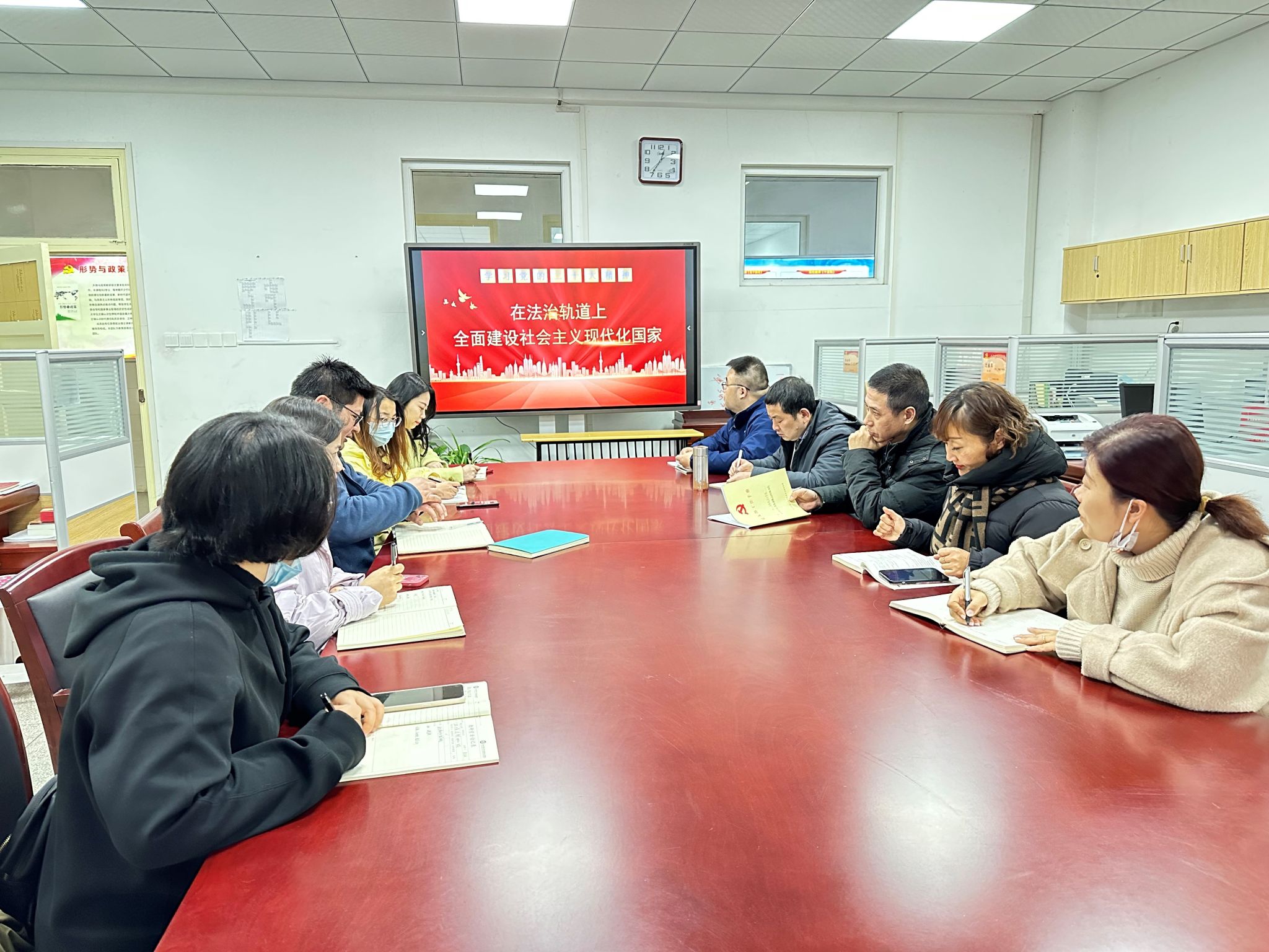 会议强调,党的二十大报告首次将全面依法治国作为专章进行论述和专门部署,指出全面依法治国是国家治理的一场深刻革命,提出在法治轨道上全面建设社会主义现代化国家。这充分体现了以习近平同志为核心的党中央对全面依法治国的高度重视,进一步丰富和发展了习近平法治思想,凸显了法治建设事关根本的战略地位,强化和拓展了新时代法治建设服务保障党和国家工作大局的战略任务,是我们党在新时代坚持全面依法治国、推进法治中国建设的纲领性文件。支部党员要深入学习理论,吃透基本精神,把握核心要义,要把报告中关于“依法治国”相关问题作为线索融入到德法课的具体教学中,用党的科学理论武装学生,帮助大学生树立正确的法治观。