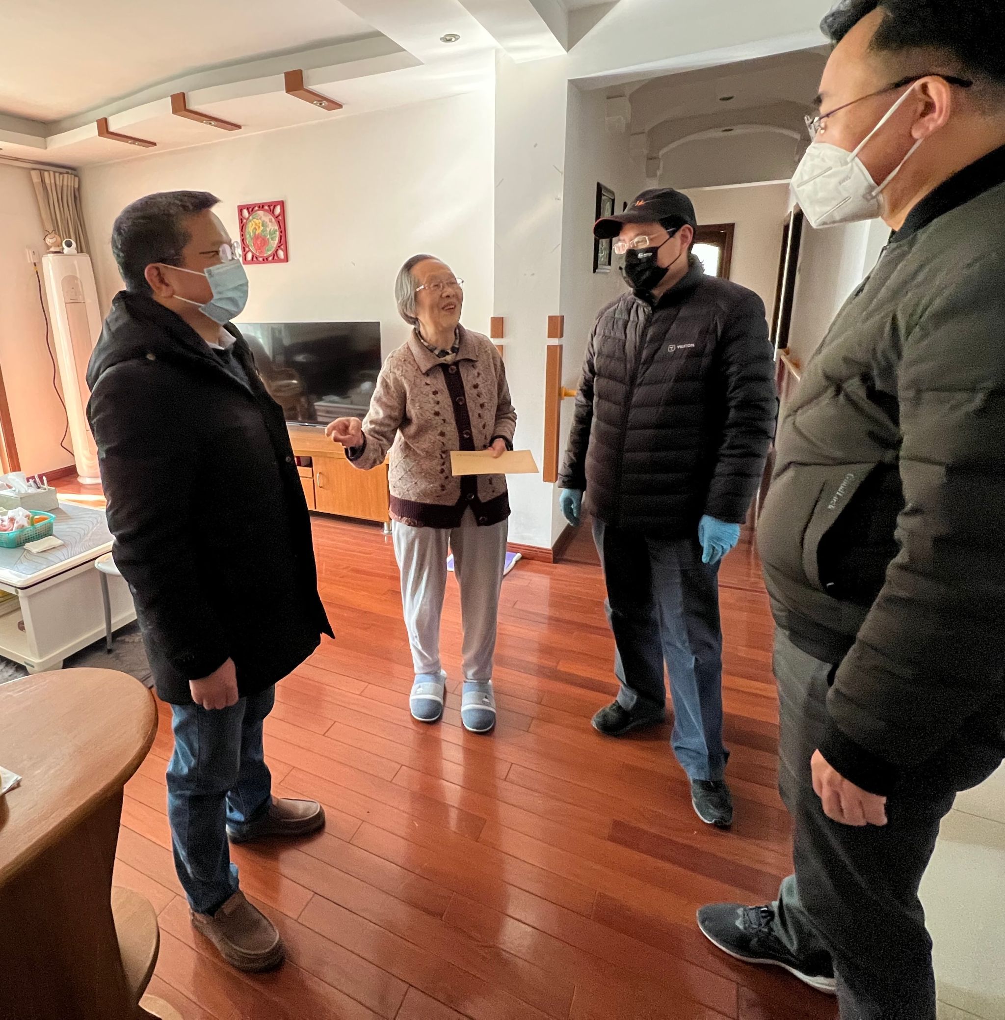 本网讯 在新春佳节到来之际,1月11日上午,马克思主义学院党政领导孙超、方国武、袁修雨来到退休党员余茂笈、龚仁芳、张玉屏、刘雪英家中,向他们送去组织的关怀和新春祝福。
