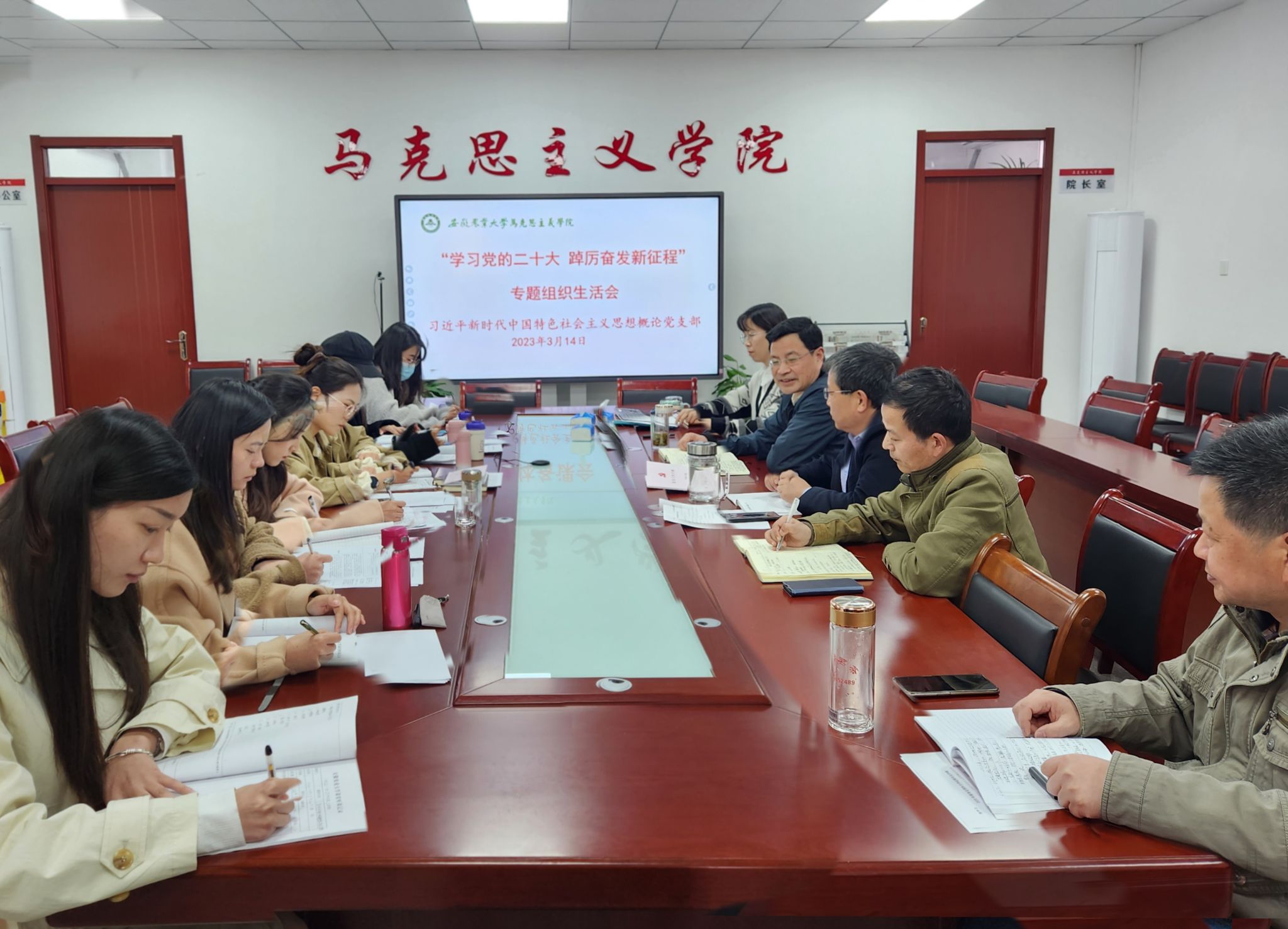 本网讯 3月14日下午,习近平新时代中国特色社会主义思想概论党支部在马克思主义学院302会议室召开了2022年度“学习党的二十大 踔厉奋发新征程”专题组织生活会,学院党委书记孙超及党委副书记、纪委书记、副院长袁修雨参加会议。本次会议由党支部书记王晶晶同志主持。