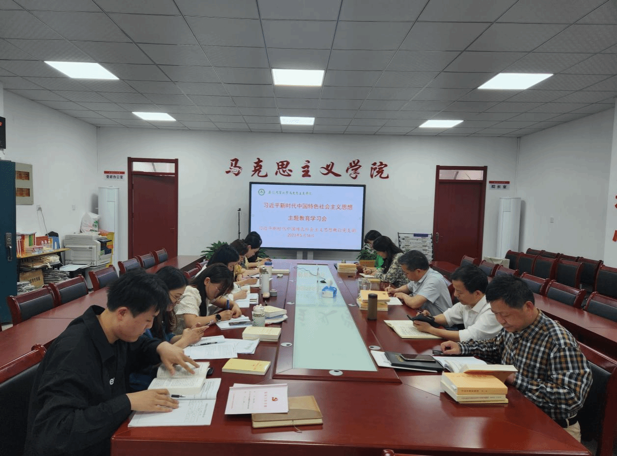 本网讯 5月16日下午,习近平新时代中国特色社会主义思想概论党支部在人文楼302室召开学习贯彻习近平新时代中国特色社会主义思想主题教育学习会。党支部全体教师参加了此次会议。学院党委副书记、纪委书记、副院长袁修雨参加学习,党支部书记王晶晶主持会议。