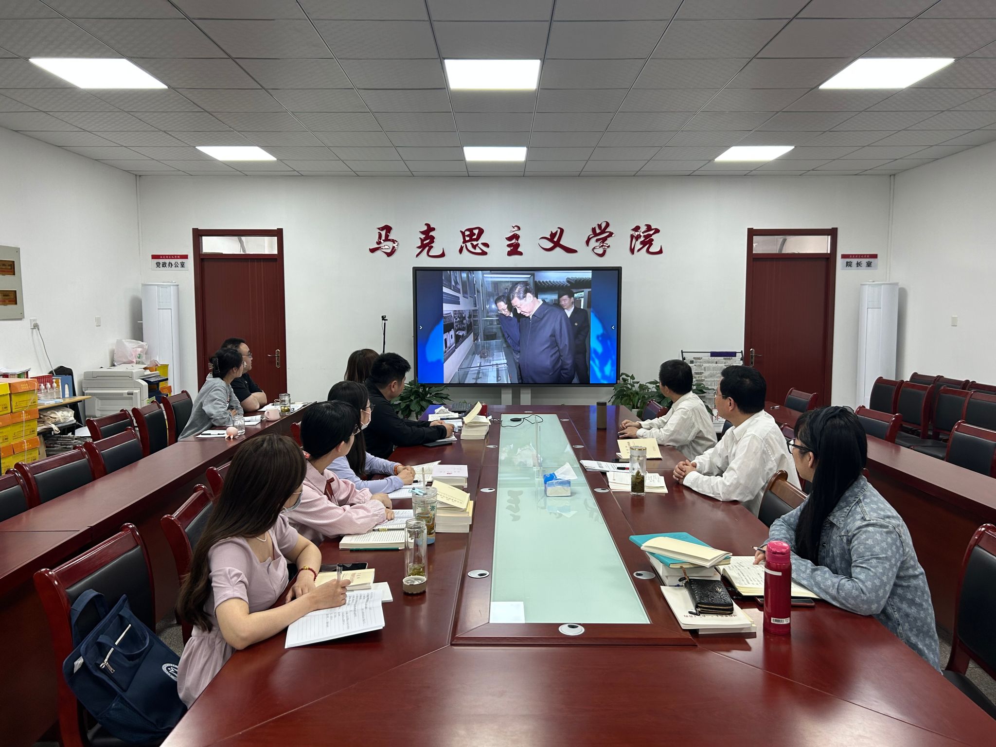 本网讯 为深入学习习近平总书记关于调查研究的重要论述,做好主题教育的调研工作,5月23日下午,马克思主义学院党委召开专题学习会议,院党委书记孙超主持会议。院党委副书记、院长方国武,院党委副书记、纪委书记、副院长袁修雨,党委委员,党支部书记等参加学习。