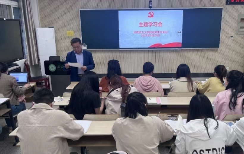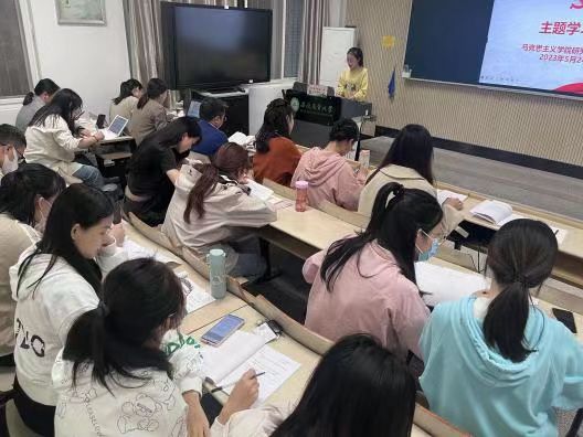 本网讯 为深入开展学习贯彻习近平新时代中国特色社会主义思想主题教育,5月24日晚上18:30马克思主义学院研究生第一、第二、第三党支部在人文楼101举行主题教育学习会暨考博经验分享会。本次活动由马克思主义学院党委副书记、纪委书记、副院长袁修雨主持,研究生第一党支部书记张思嘉、研究生第二党支部书记孙刘琴、马克思主义学院研究生党支部全体党员、入党积极分子参加。