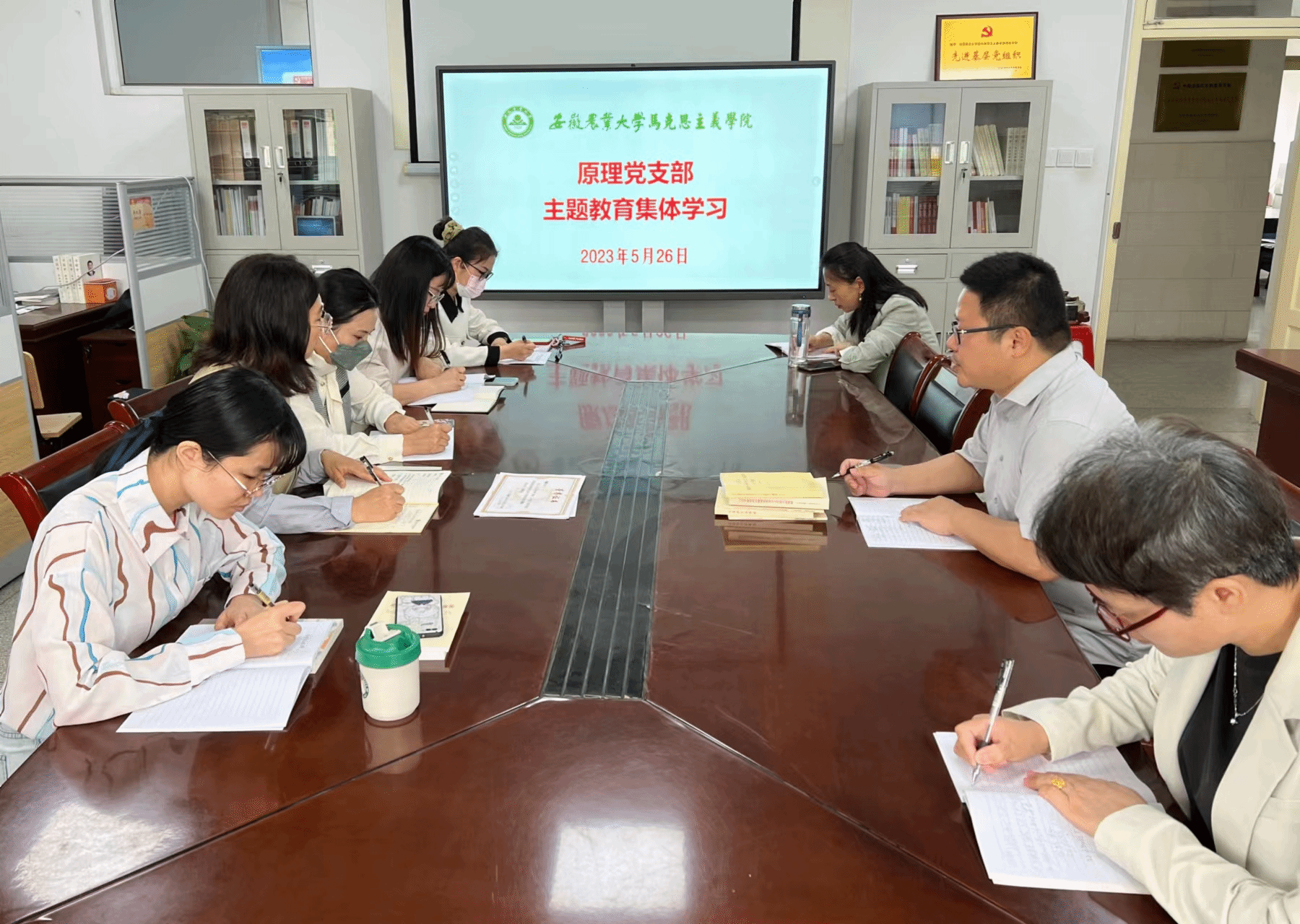 本网讯 2023年5月26日,马克思主义基本原理党支部在人文楼301会议室开展学习贯彻习近平新时代中国特色社会主义思想主题教育集体学习,会议由马克思主义基本原理党支部书记徐玉祺主持,支部党员参加会议。此次会议主要组织学习贯彻习近平新时代中国特色社会主义思想,重点学习研讨《习近平新时代中国特色社会主义思想学习纲要》、《论党的自我革命》等内容。