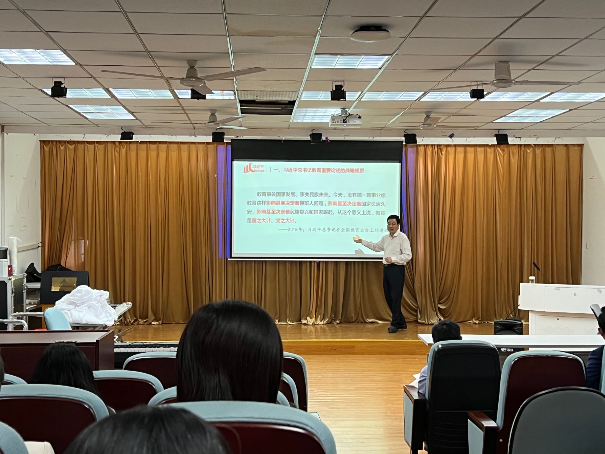 学院党委书记孙超为学院全体党员教师讲授学习贯彻习近平新时代中国特色社会主义思想主题教育专题党课,深入学习贯彻习近平总书记关于教育的重要论述,号召全体教职工要在坚定理想信念、厚植爱国主义情怀、加强品德修养、增长知识见识、培养奋斗精神和增强综合素质这六个方面上下功夫。同时,孙超带领全体教职工学习了习近平总书记在中共中央政治局第五次集体学习上的重要讲话,重点学习了加快建设教育强国为中华民族伟大复兴提供有力支撑,坚持把高质量发展作为各级各类教育的生命线,加快建设高质量教育体系,加强师德师风建设。会议强调,要进一步提高政治站位,不断强化学习贯彻的思想自觉、政治自觉、行动自觉,强化组织领导,注重系统谋划,将其作为学习贯彻习近平新时代中国特色社会主义思想主题教育的重要内容,引导广大教师坚定理想信念、陶冶道德情操、涵养扎实学识、勤修仁爱之心,潜心教书育人。