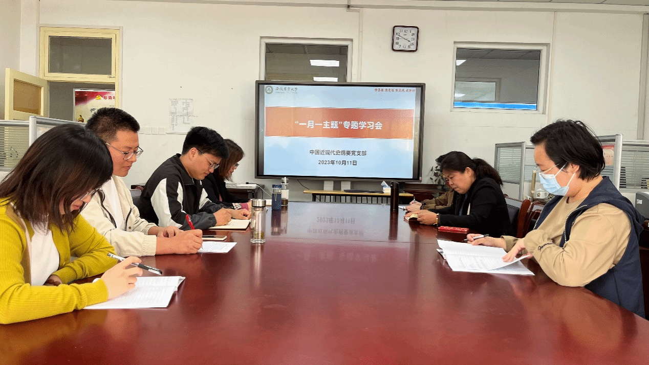 本网讯 10月11日下午,纲要教研部在马克思主义学院303室召开“一月一主题”专题学习会,纲要教研部部分教师参加会议,会议由党支部书记颜莉主持。