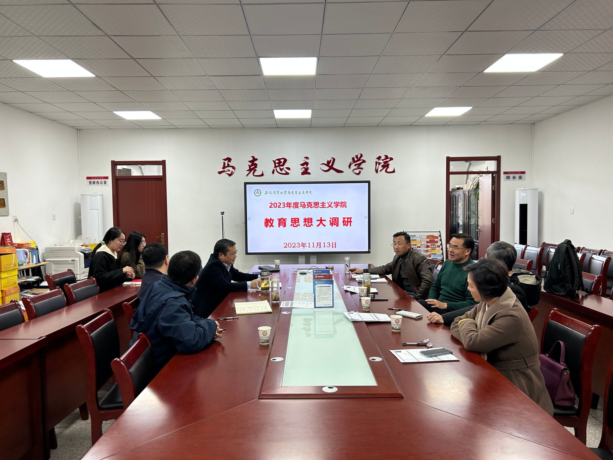 本网讯 11月13日下午,马克思主义学院在人文楼302室召开2023年度教育思想大调研。学院院长方国武、学院党委副书记、副院长袁修雨、徐俊教授参加会议。会议由学院党委书记孙超主持,南京农业大学马克思主义学院院长付坚强、合肥工业大学马克思主义学院唐莉教授、学校社科处王瑞处长参会指导。
