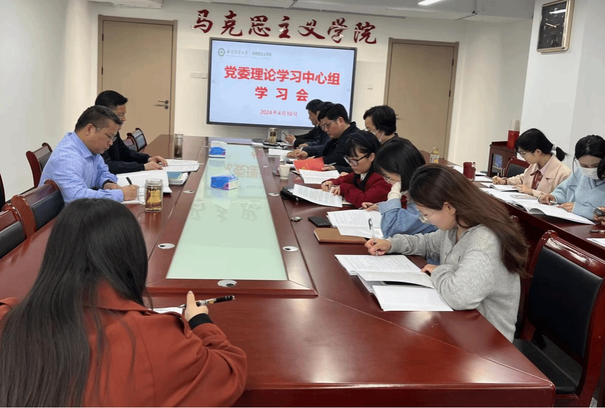 本网讯 4月10日下午,马克思主义学院在勤业楼1010室召开院党委理论学习中心组(扩大)学习会,会议由院党委书记孙超主持。院党委副书记、纪委书记、副院长袁修雨,学院党委委员、党支部书记等参加了会议。