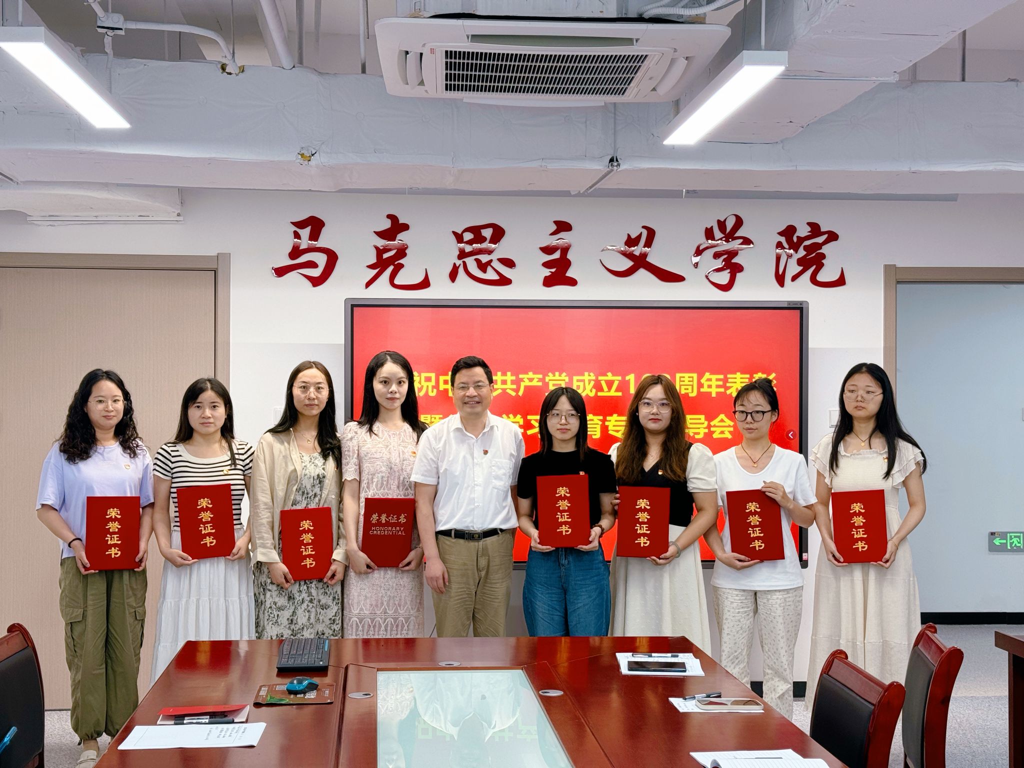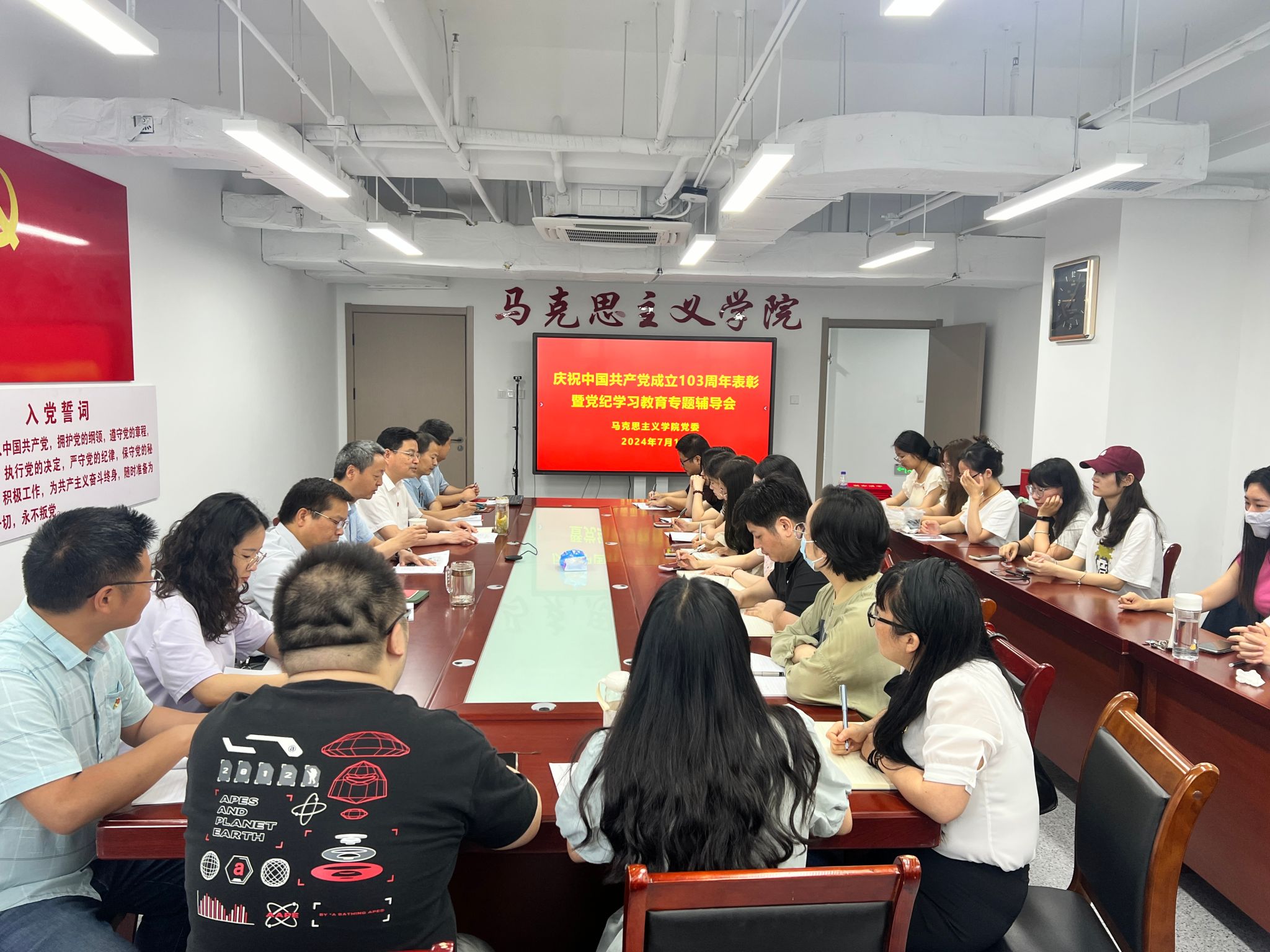 本网讯 为庆祝中国共产党成立103周年,推动党纪学习教育走深走实,7月1日上午,马克思主义学院举行庆祝中国共产党成立103周年表彰暨党纪学习教育专题辅导会。会议由院党委书记孙超主持。全体院领导、党委委员,支部书记、支委,学院2024年上半年全体新发展党员参加会议。