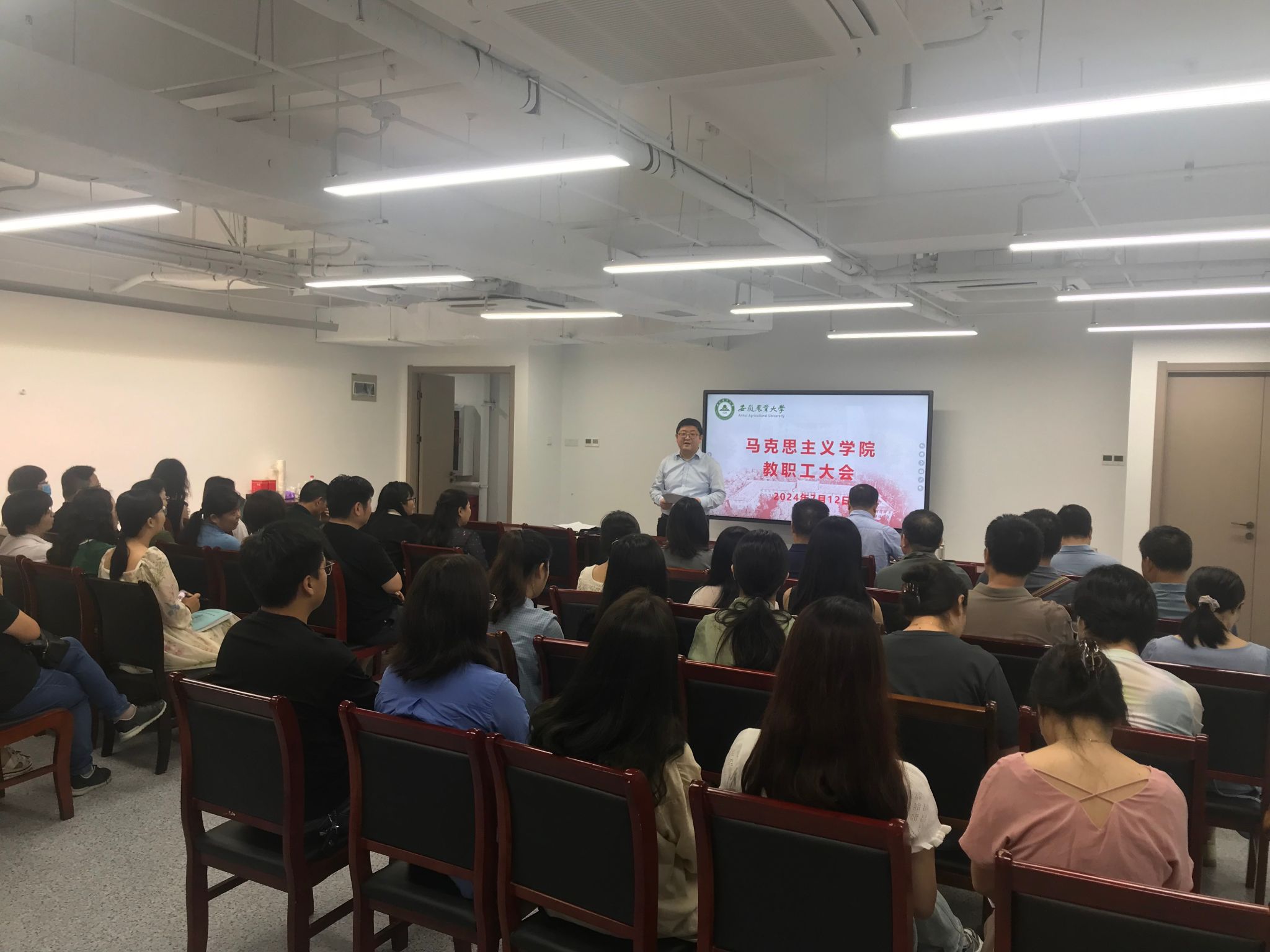 本网讯 7月12日,学院在1009会议室召开全体教职工大会,总结本学期工作,部署暑期重点工作。会议由院党委副书记、纪委书记袁修雨主持。