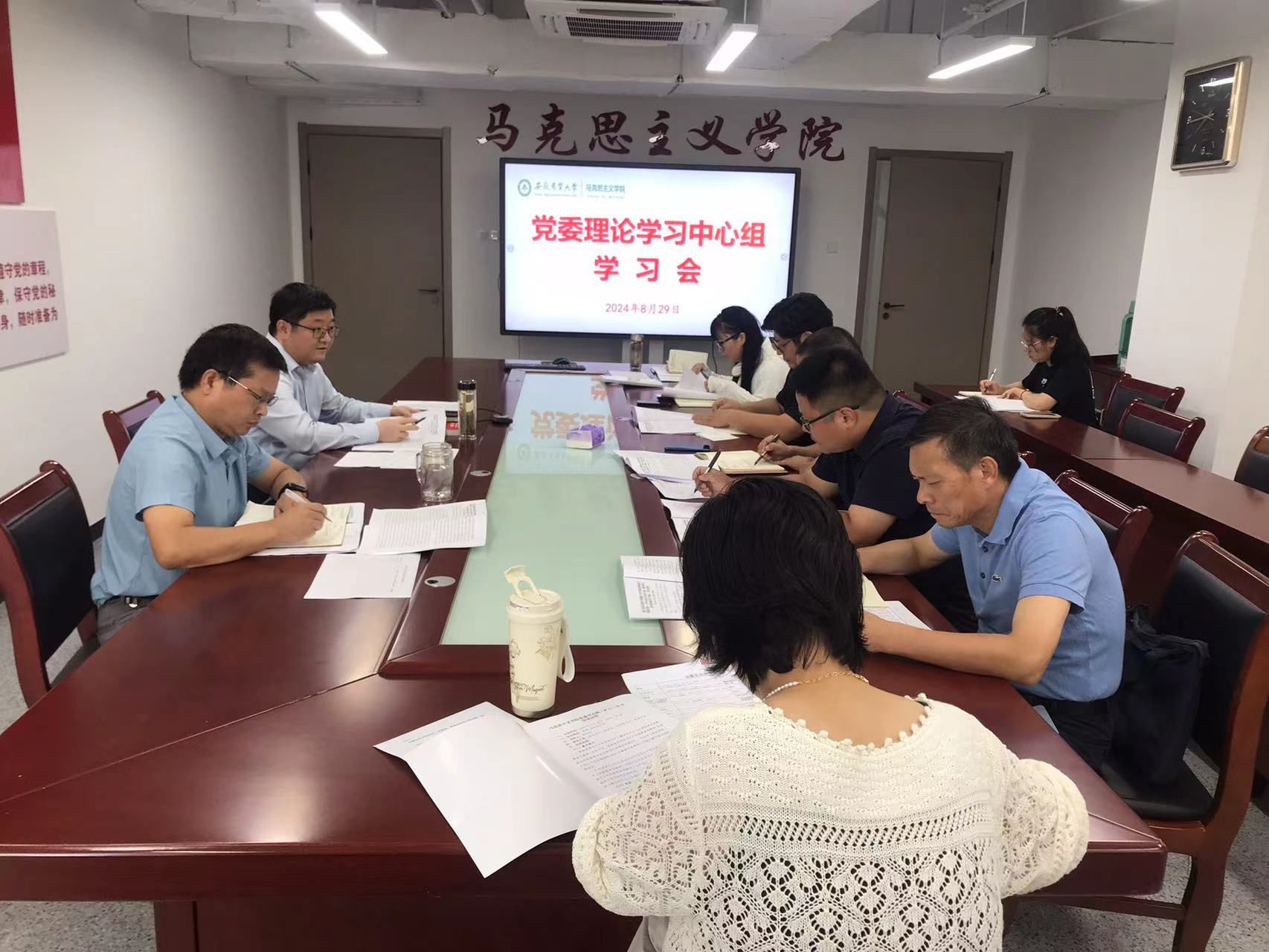 本网讯 8月29日下午,学院在勤业楼1010会议室召开党委理论学习中心组学习暨重点工作推进会,院领导班子成员、党委委员、支部书记参加。会议由院党委书记韩弥明主持。