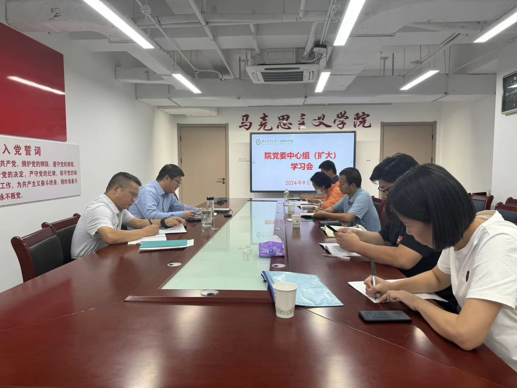 本网讯9月11日上午,学院在勤业楼1010会议室召开党委理论学习中心组学习会,院领导班子成员、党委委员、支部书记参加。会议由院党委书记韩弥明主持。