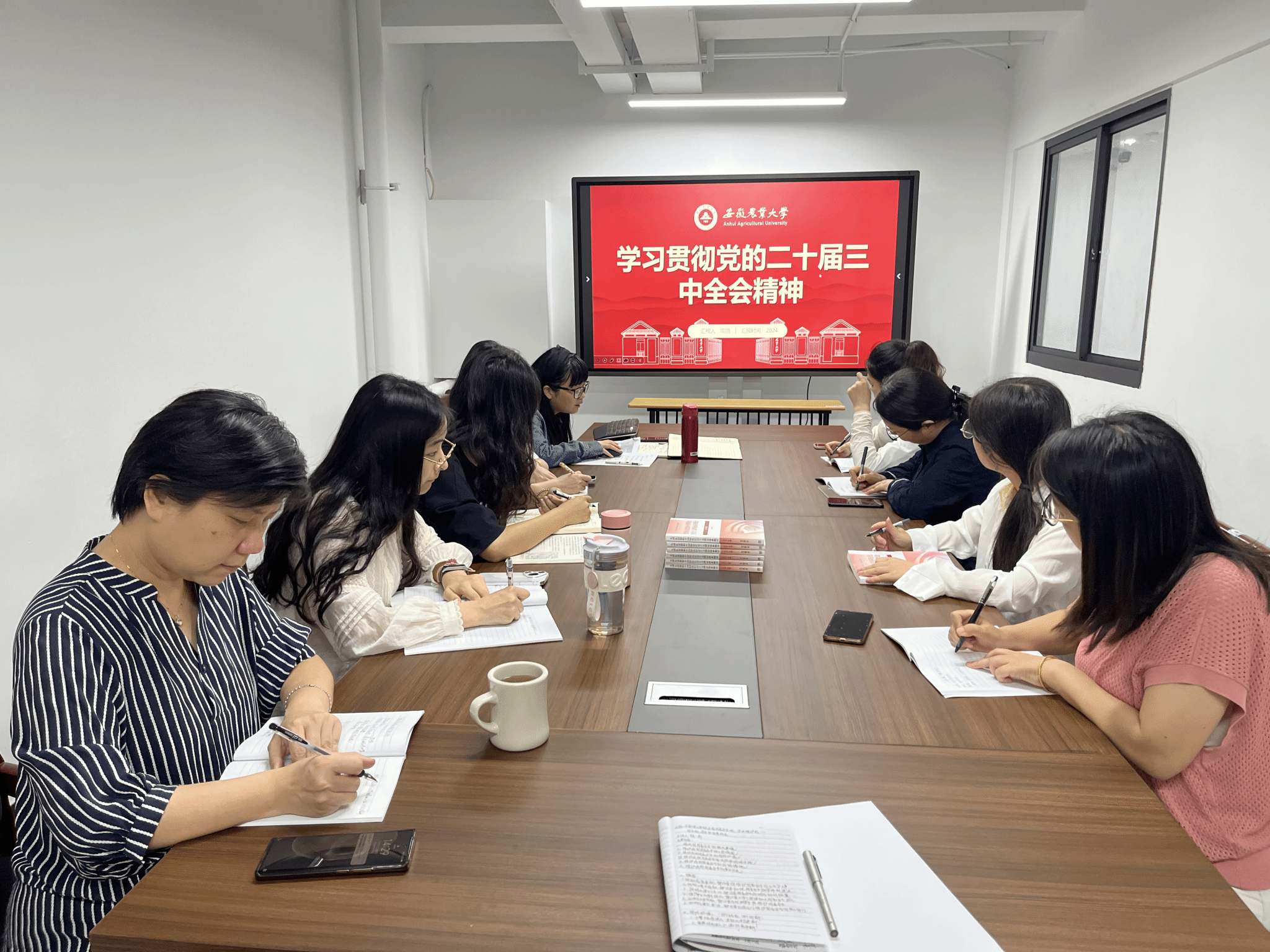 本网讯 为深入学习贯彻党的二十届三中全会精神,9月27日,毛泽东思想和中国特色社会主义理论体系党支部开展一月一主题专题学习会,党支部全体党员参加,会议由党支部书记周丽主持。
