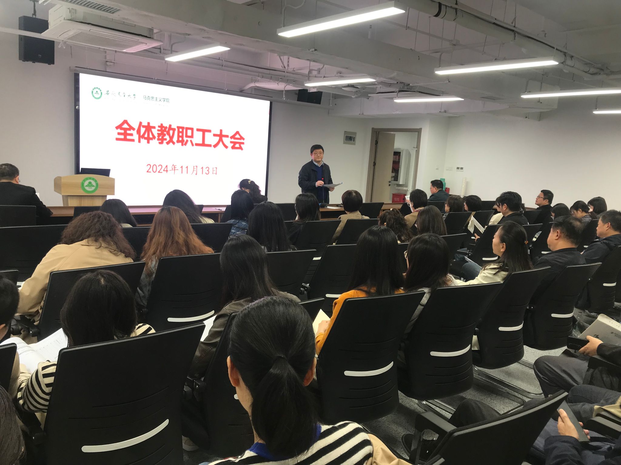 本网讯 11月13日下午,学院在1009会议室召开教职工大会,传达学习习近平总书记考察安徽重要讲话精神,部署安排本科教育教学审核评估等重点工作。学院党政领导和全体教职工参加。