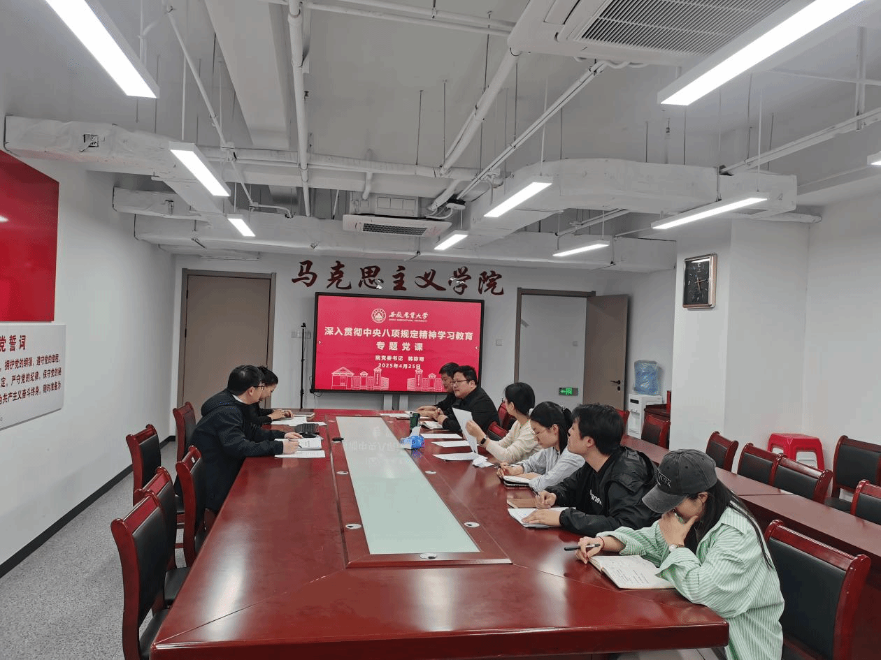 本网讯 4月25日下午,马克思主义学院党委书记韩弥明讲授深入贯彻中央八项规定精神学习教育专题党课,学院党委委员、党支部书记等参加党课学习。