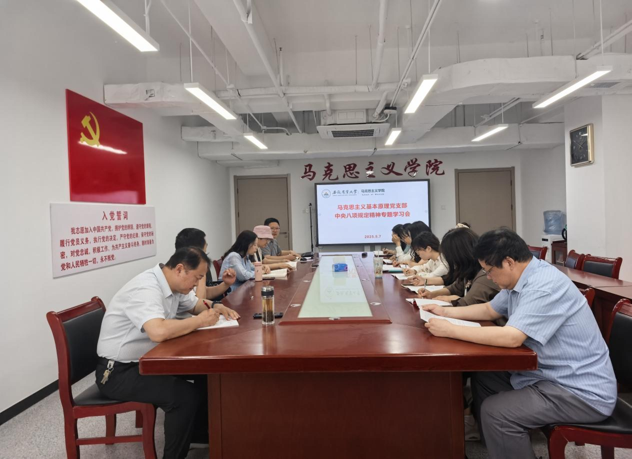 本网讯 2025年5月7日,马克思主义基本原理党支部在院1010会议室召开专题会议,重点围绕中央八项规定及其实施细则精神、《习近平关于加强党的作风建设论述摘编》和习近平总书记在贵州、云南和安徽考察时的重要讲话精神等进行集中学习和研讨。会议由支部书记徐玉祺主持,支部全体党员参加专题学习。