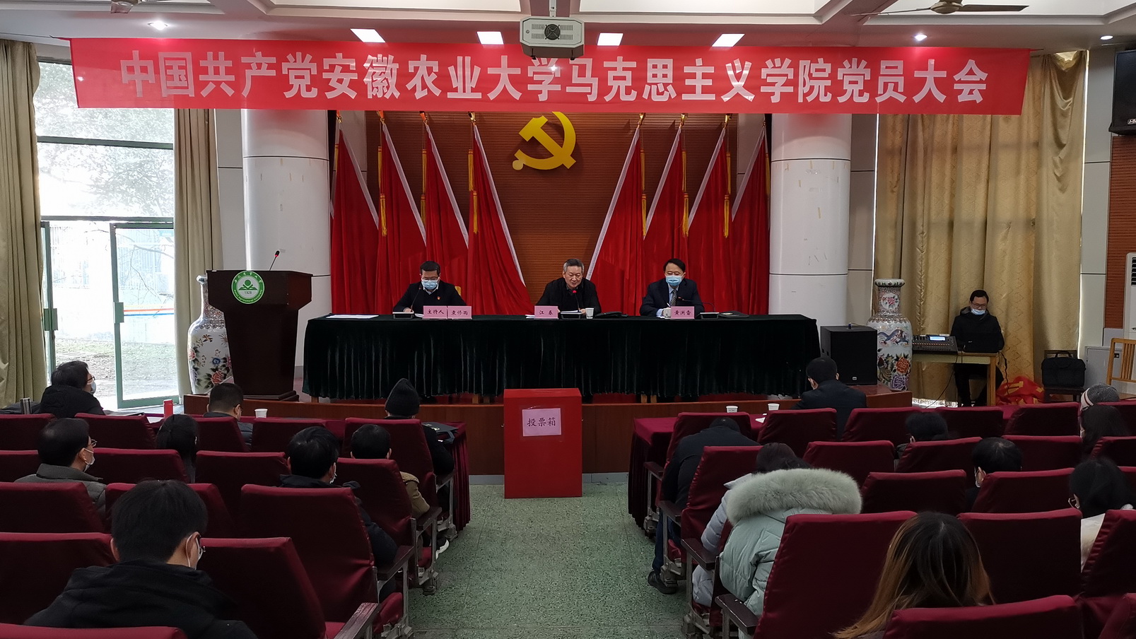 本网讯 2021年1月14日上午,中共安徽农业大学马克思主义学院党员大会在林学楼报告厅召开。校党委书记江春,校党委常委、组织部部长韩平等出席会议,学院全体党员参加了大会。大会由学院副院长袁修雨主持。