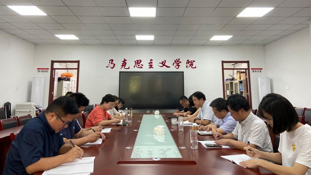 本网讯 9月3日下午,马克思主义学院在院会议室召开党总支理论中心组(扩大)学习会,会议由院党总支书记、院长黄洪雷主持。学院副书记、副院长袁修雨,学院党总支委员,办公室、各支部书记,教研部、中心主任等参加会议。