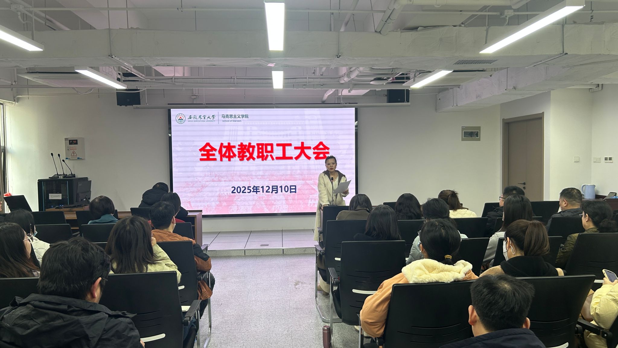 本网讯 12月10日下午,学院在1009会议室召开全体教职工大会,学院领导班子成员、全体教职工参加。