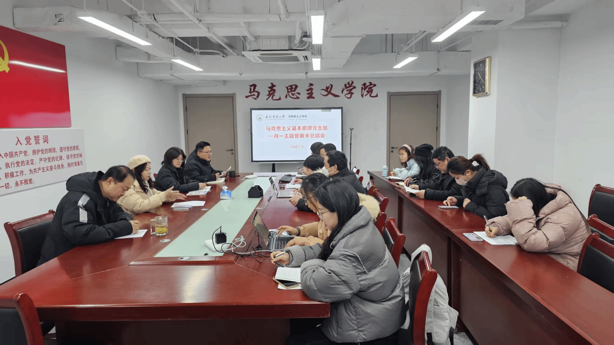 会议伊始,共同学习了习近平总书记二〇二六年新年贺词和习近平总书记重要文章《学习好贯彻好党的二十届四中全会精神》,支部教师围绕学习主题进行了交流研讨。