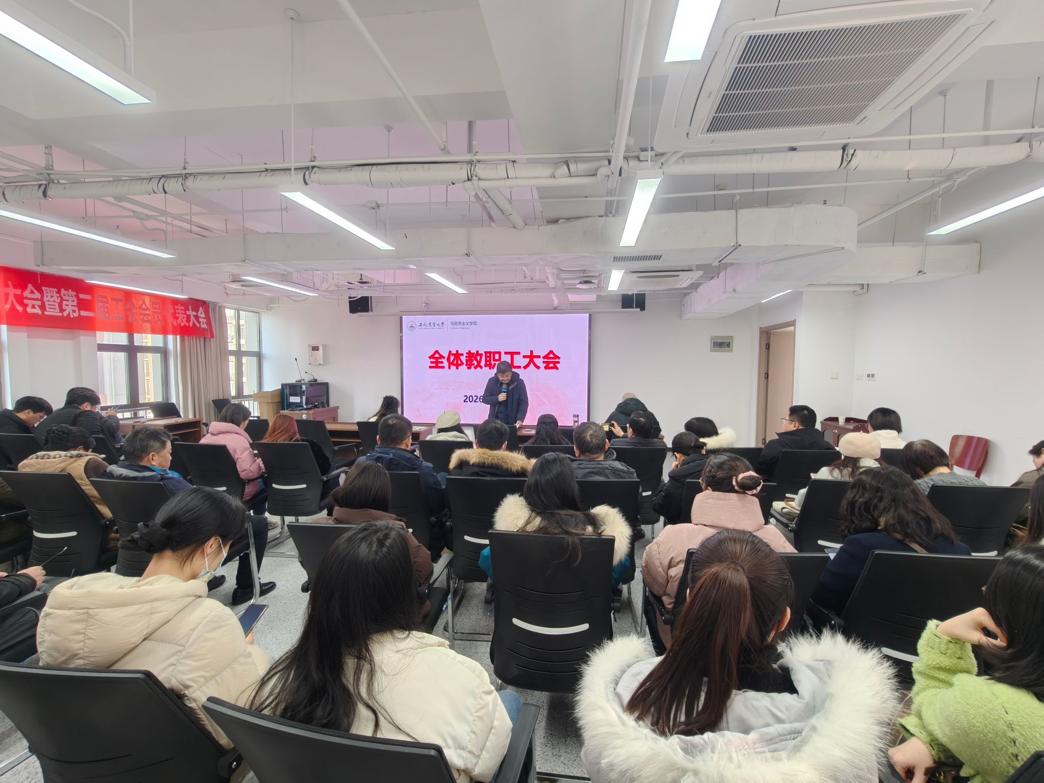 会议还就2026届研究生就业、防电诈宣传教育、寒假期间校园安全稳定、国家级课题申报、学期末教学工作等进行了布置,并就年底绩效考核与职称量化积分工作进行了解读。