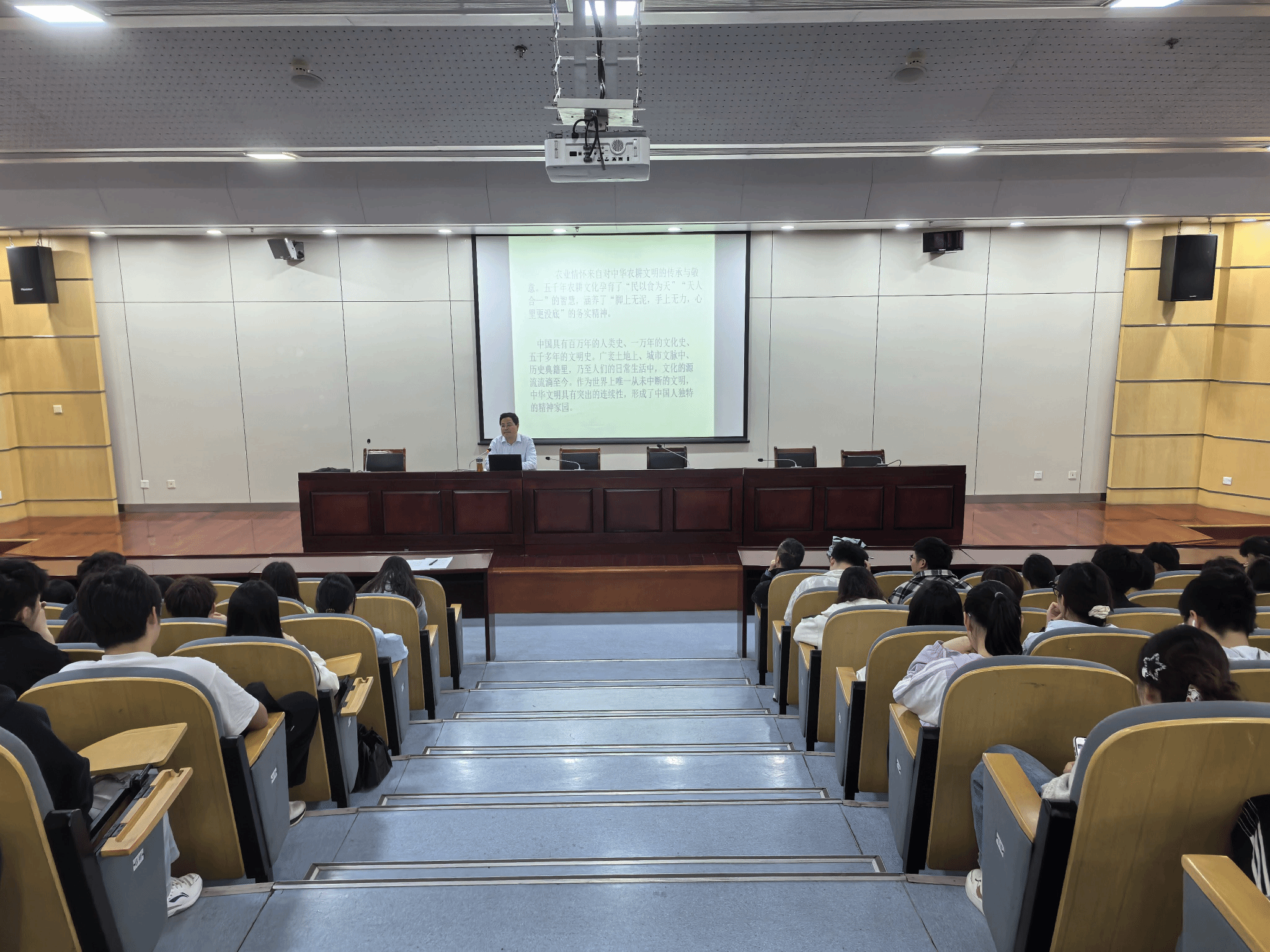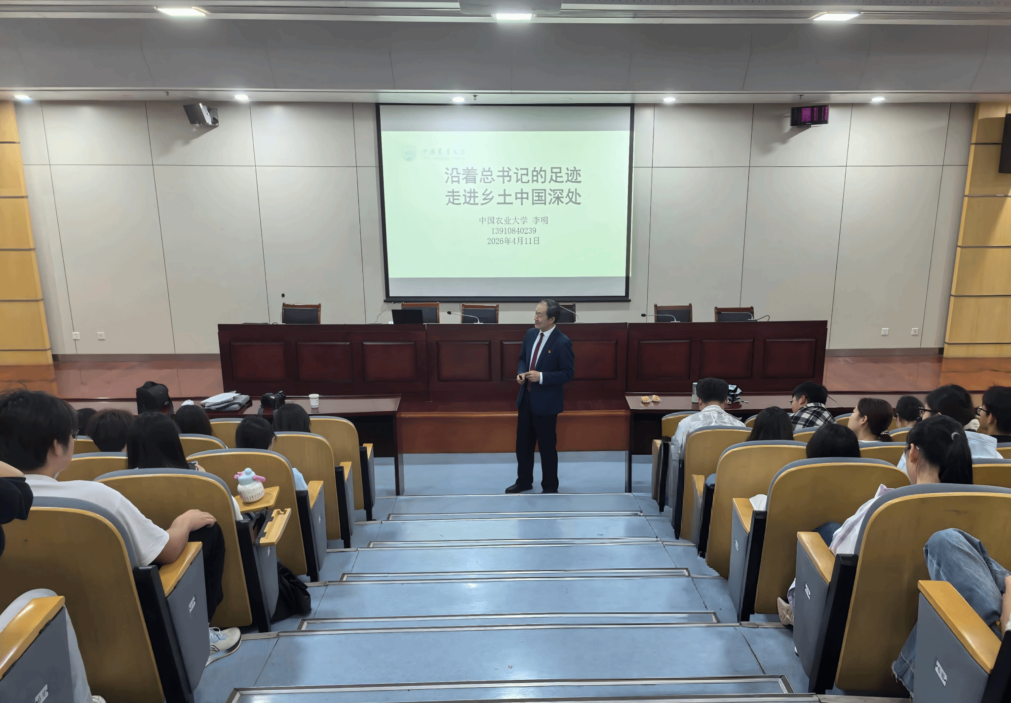 李明教授以《沿着总书记的足迹,走进乡土中国深处》为题,结合习近平总书记考察乡土、心系三农的生动实践,带领同学们深刻感悟“把论文写在祖国大地上”的时代内涵,鼓励青年学子扎根基层、服务三农,主动将个人成长融入乡村振兴伟大事业,在田野一线、乡土深处绽放青春光彩、实现人生价值。