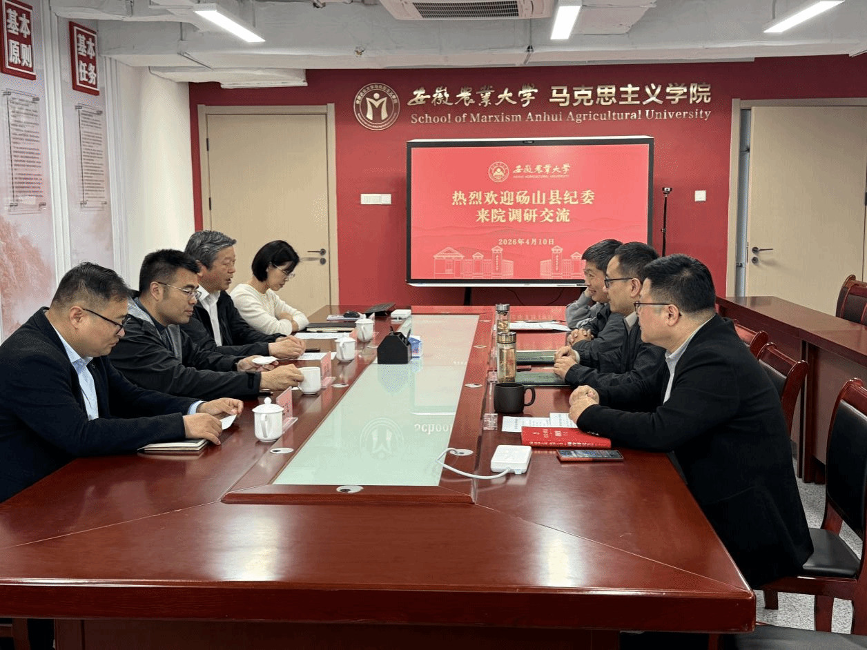 徐玉祺致欢迎词,并介绍了安徽农业大学建校历史、马克思主义学院近年来学科发展情况和教学科研成果。砀山县纪委副书记周刚介绍了砀山县基本情况,砀山县监委委员杨新强就干部队伍素能提升、学术聚集、学生实践等方面提出了合作意向。据此,刘灿介绍了马克思主义学院人才培养及师资队伍情况、暑期培训班经验,并就双方合作具体事宜提出了相关意见。乡村振兴学院、继续教育学院党委书记张晓伟对深化校县合作提出了深切期许,倡导师生注重社会调查研究与实践,推进成果转化与应用。