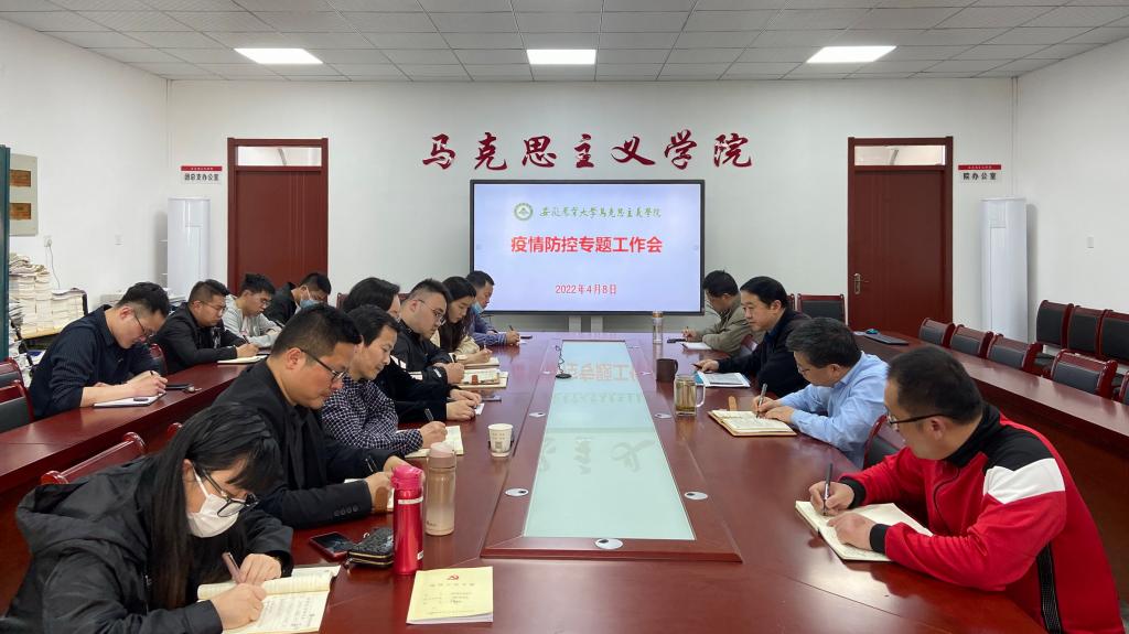 本网讯 4月8日下午,马克思主义学院在院会议室召开疫情防控工作专题会议,会议由院党委书记、院长黄洪雷主持,院党委副书记、纪委书记、副院长袁修雨,学院党委委员、党支部书记、办公室工作人员、学生干部等参加会议。
