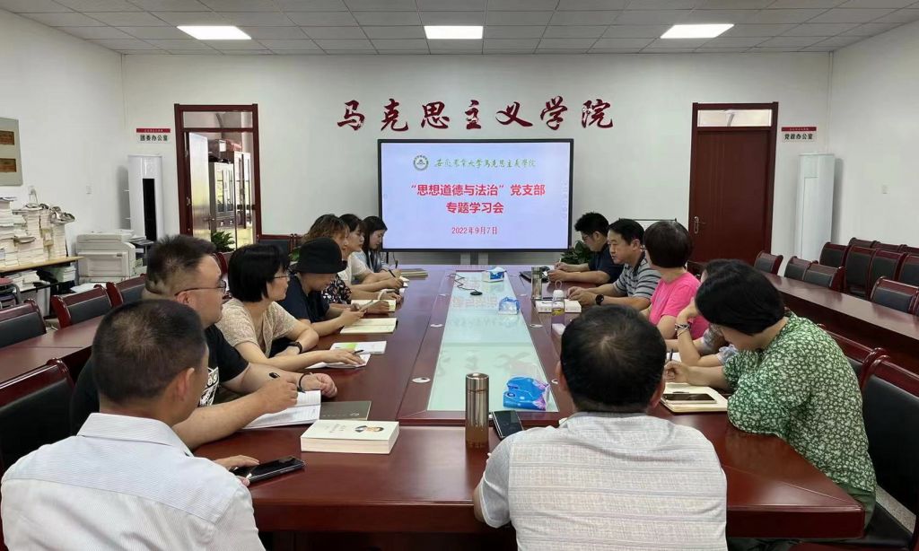 本网讯 为深入学习贯彻习近平新时代中国特色社会主义思想,学深悟透《习近平谈治国理政》第四卷,9月7日下午,思想道德与法治党支部组织专题学习,并部署党支部、教研部本学期重点工作。院党委书记、院长黄洪雷作为党支部成员参加学习,党支部全体党员参会,学习会由党支部书记、教研部主任吕岩主持。