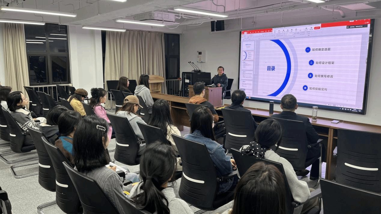 首先,徐俊老师主讲了《如何撰写学术论文》。徐老师详细介绍了学术论文的结构、写作技巧及研究思路的组织。他强调,学术写作不仅需要扎实的理论基础,还要具备严谨的逻辑思维和清晰的表达方式。通过对经典学术论文的分析,徐老师为与会师生提供了有价值的写作指导,帮助大家提升了学术写作的能力。