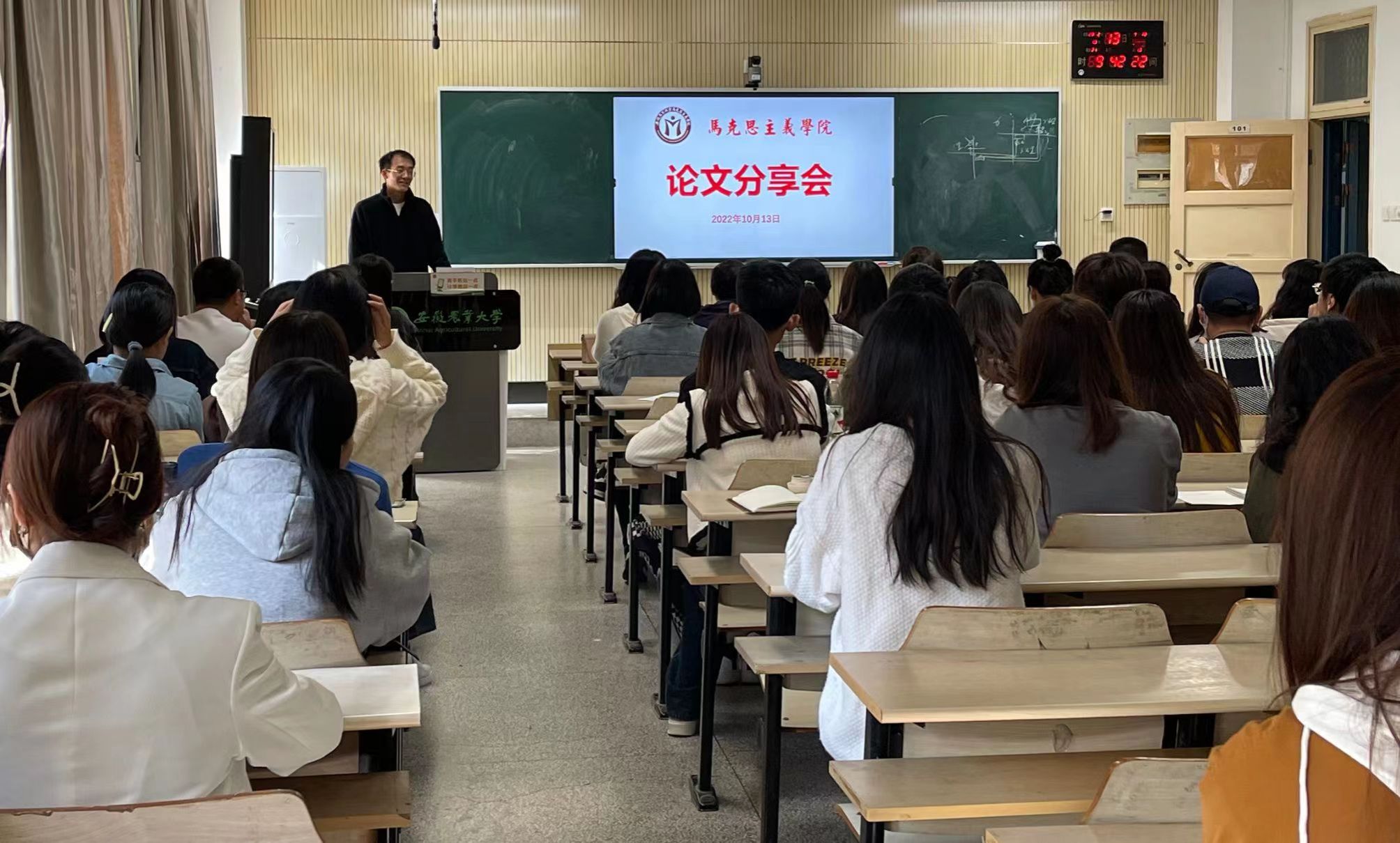 本网讯 为深入贯彻落实习近平总书记对于研究生教育工作的重要指示,不断提升研究生学术素养与科研能力,夯实马克思主义理论功底,10月13日上午,我院在人文楼101室举办本学期场硕士研究生论文分享会。我院学科建设研究生培养)中心主任徐俊、硕士研究生导师阚红艳、马克思主义基本原理教研部主任徐玉祺作为点评教师出席会议2021级、2022级马克思主义理论专业和农村发展专业部分硕士研究生参与了本次交流会。