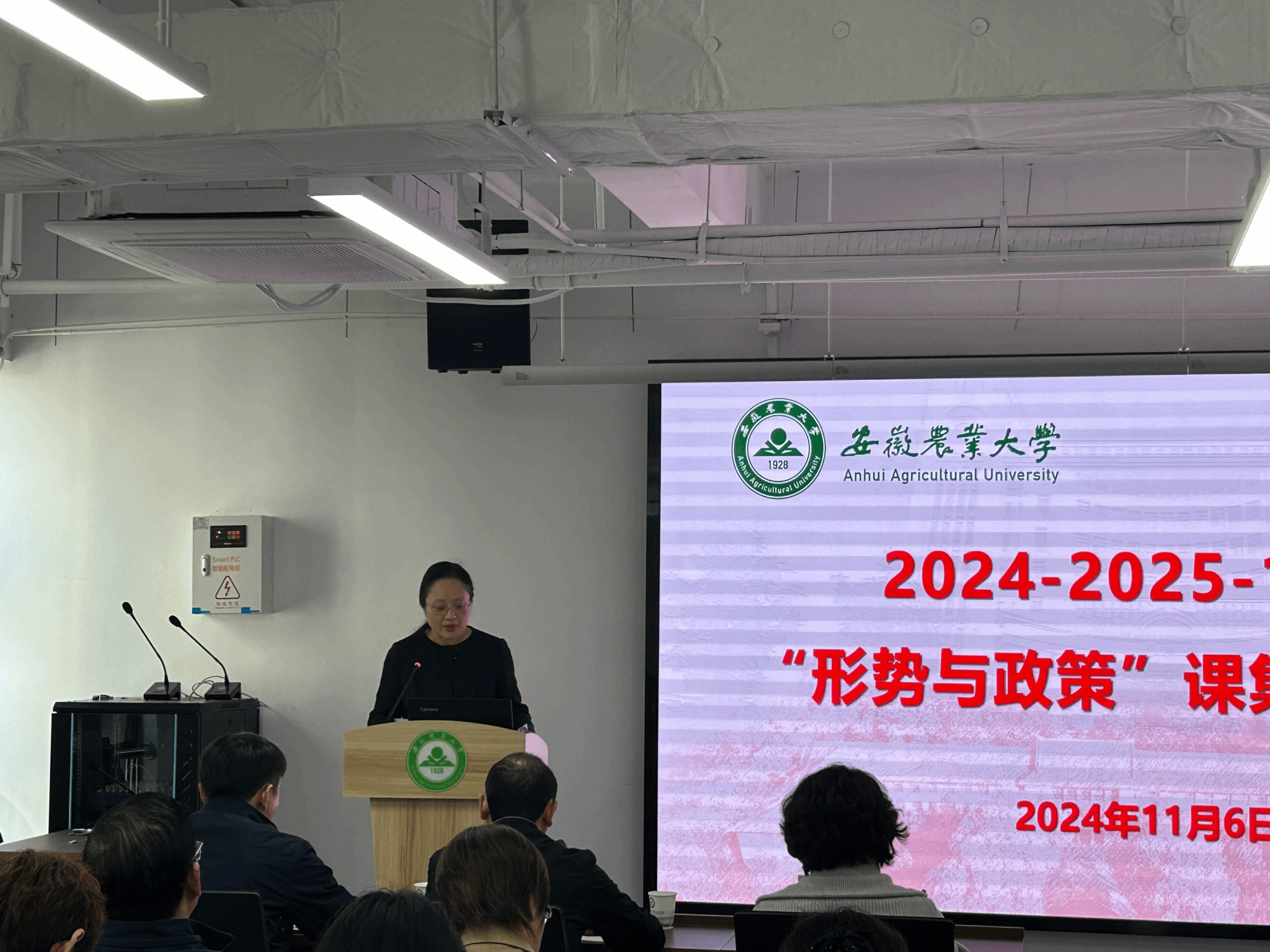 李红指出,近年来,学校党委高度重视思政教育教学工作,不断加强师资队伍建设,提升教学质量,“形势与政策”课充分发挥了立德树人、铸魂育人的重要作用。讲好“形势与政策”课是落实立德树人根本任务的关键,对维护学校安全稳定发挥着至关重要的作用。今后工作中需注重“三个结合”,要与国内国际局势相结合,坚持与时俱进,树立“大思政课”新格局,将思政课堂与社会现实相融合、与时代场景相关联,让学生与时代同频共振;要与校史校情和紧密工作相结合,用好校史资源,讲好校史故事,让安农精神走进思政课堂,把农大元素贯穿思政教学的全过程;要与学生发展成长诉求相结合,在深入开展思想政治教育过程中,以学生喜闻乐见的话题、形式展开,把课程讲准、讲新、讲活。