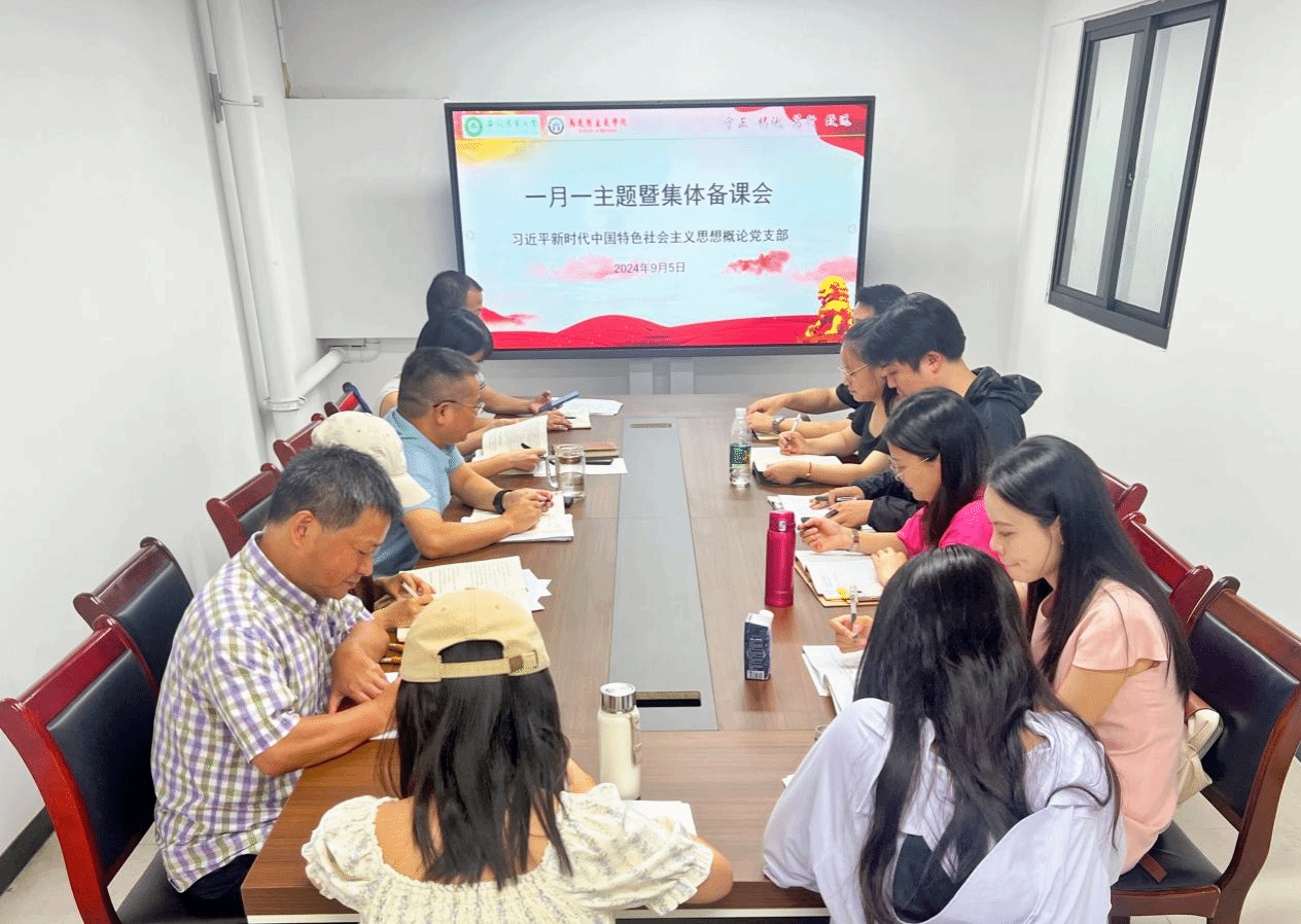 本网讯 9月5日上午,习近平新时代中国特色社会主义思想概论党支部召开一月一主题暨集体备课会。院党委副书记、纪委书记袁修雨及党支部全体教师党员参加会议,会议由党支部书记王晶晶主持。