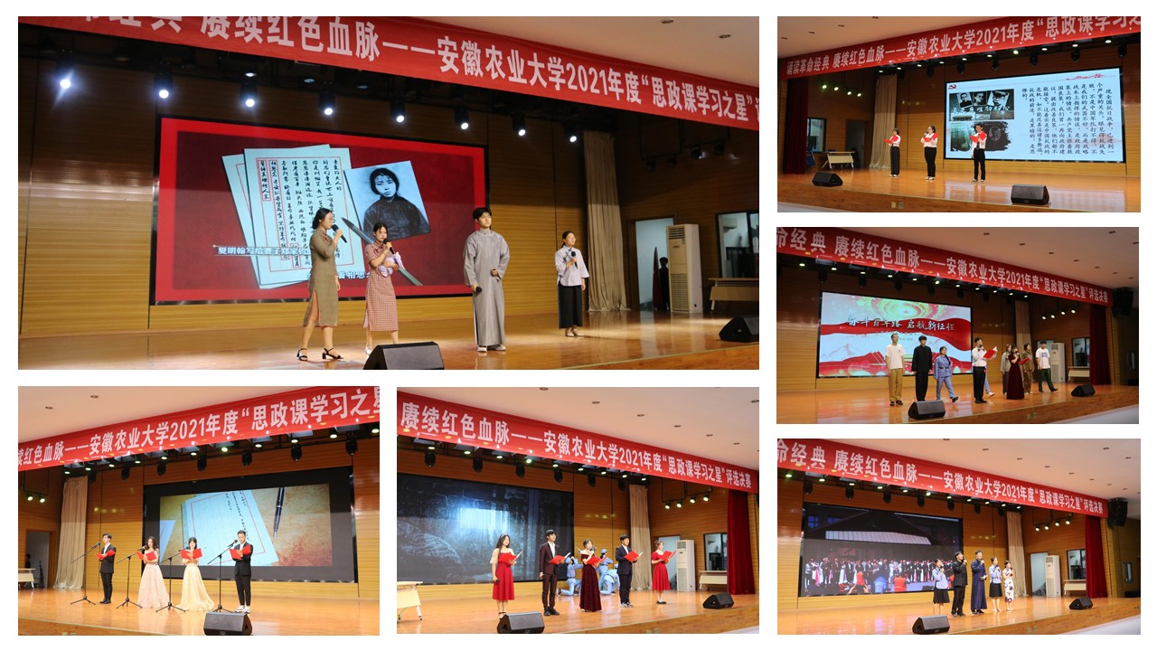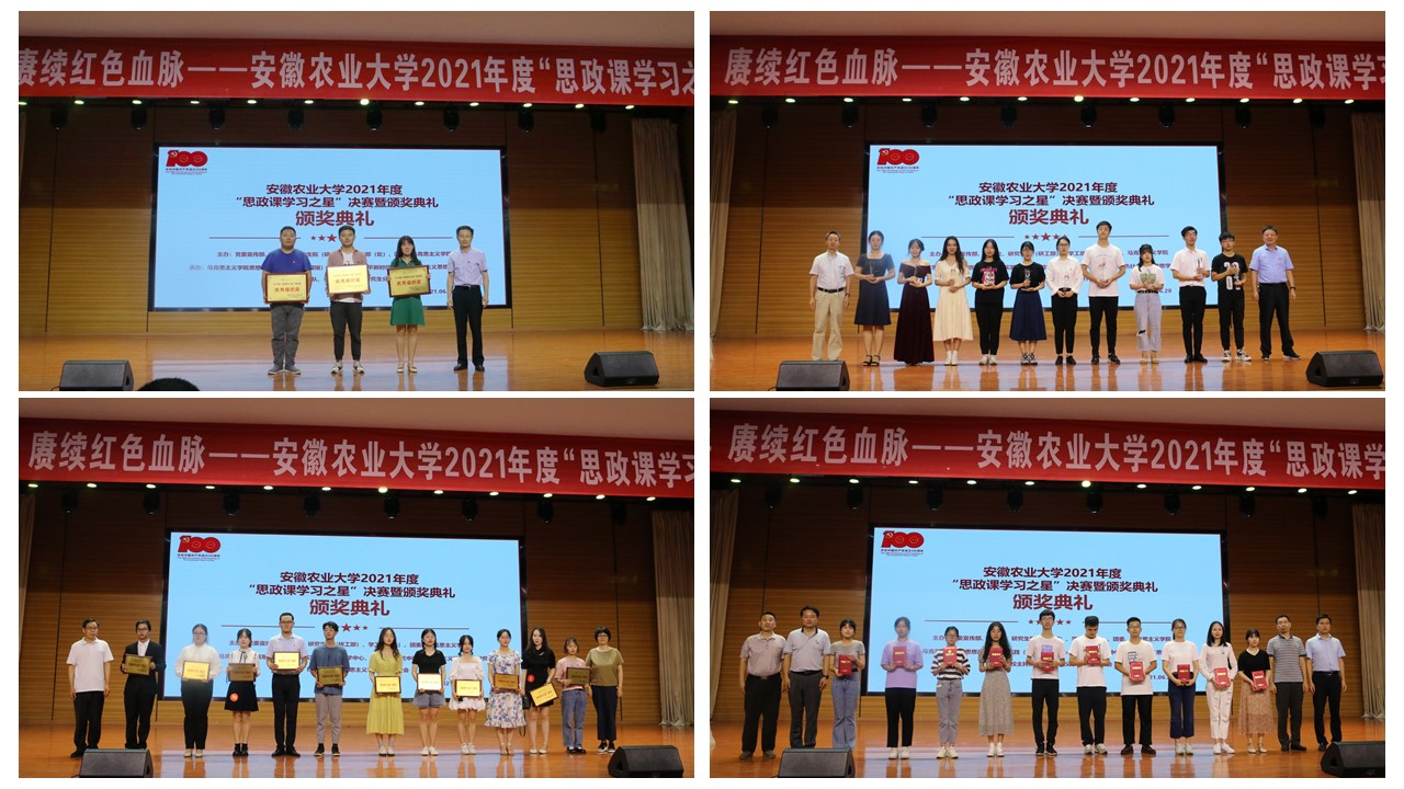 本网讯 628日晚,随着诵读革命经典 赓续红色血脉经典诵读比赛在我校学生活动中心多功能厅落下帷幕,安徽农业大学2021年度思政课学习之星评选决赛圆满结束。校党委常委、组织部部长韩平,纪委副书记彭庆刚,教务处处长曹成茂,学工部部长姚莉,招生就业处处长刘海涛,图书馆馆长吴文革,党委宣传部副部长曹雷,研工部副部长姜家生,校团委副书记张志平参加活动并担任评委,马克思主义学院负责人及部分学院负责人参加活动。吴皓然、王峰等10名同学获安徽农业大学2021年度思政课学习之星,另有11名同学获思政课学习之星提名奖”。资源与环境学院、人文社会科学学院、林学与园林学院分获优秀组织奖。曹成茂为决赛作了点评。
