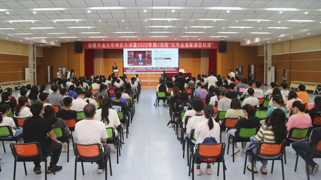 本网讯 为深入学习习近平总书记关于教育、“三农”和思政课改革创新的重要论述,进一步强化校企协同育人,推进我校思政课改革创新,强化“大思政课”建设,落实邀请优秀企业家上思政课要求。5月17日,安徽王仁和米线食品有限公司董事长、中国绿色食品协会加工与推广分会会长王仁和应邀做客神农大讲堂,在大学生活动中心作了题为《为了梦想,为了安徽农业现代化的明天》的报告。报告会前,校党委书记常业军会见了王仁和一行,党政办、新农村发展研究院、招生就业处、团委等部门负责人陪同。马克思主义学院部分思政课教师、青年学生代表100多人聆听了报告。