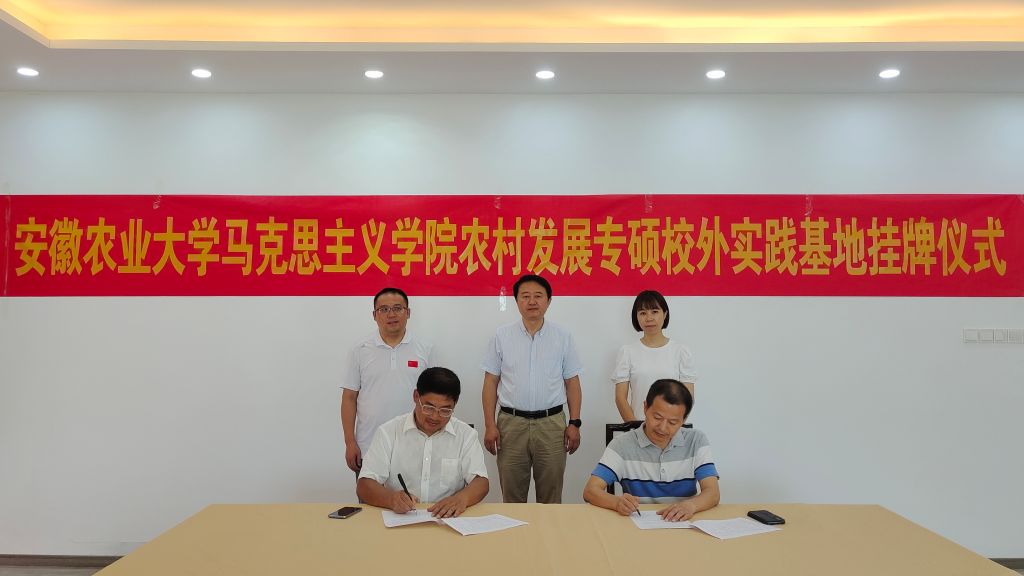本网讯 6月25日上午,马克思主义学院和肥西柿子红蔬菜瓜果农民专业合作社举行共建农村发展专业硕士研究生实践基地签约挂牌仪式。院党委书记、院长黄洪雷,合作社负责人、学院学科建设(研究生培养)中心部分教师参加了签约仪式。