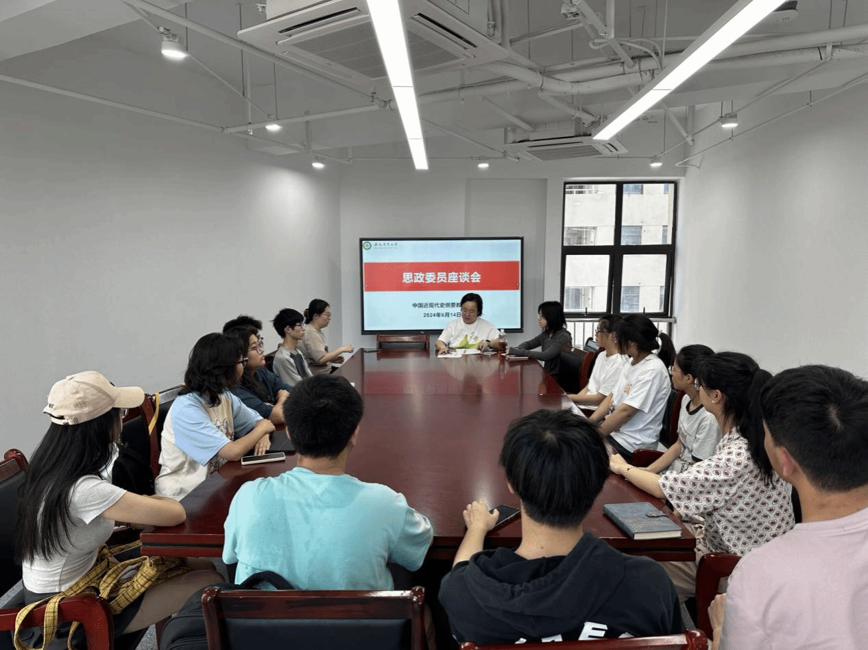 6月14日下午,中国近现代史纲要教研部在学院701会议室召开了本学期思政委员座谈会,14名思政委员代表参加。会议由中国近现代史纲要教研部主任颜莉主持,院党委副书记、纪委书记、副院长袁修雨出席此次会议。