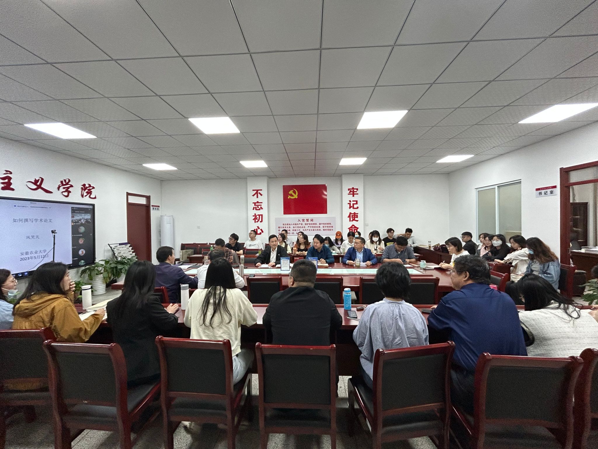 本网讯 为学习贯彻习近平新时代中国特色社会主义思想主题教育,推进“我为师生办实事”走深走实,提升教师科研水平,加强研究生学术写作能力,5月12日下午,马克思主义学院邀请南京大学特聘教授、国内著名社会学家风笑天作题为“如何撰写学术论文”的专题讲座。学院全体教师及研究生参加,讲座由学院党委书记孙超主持。