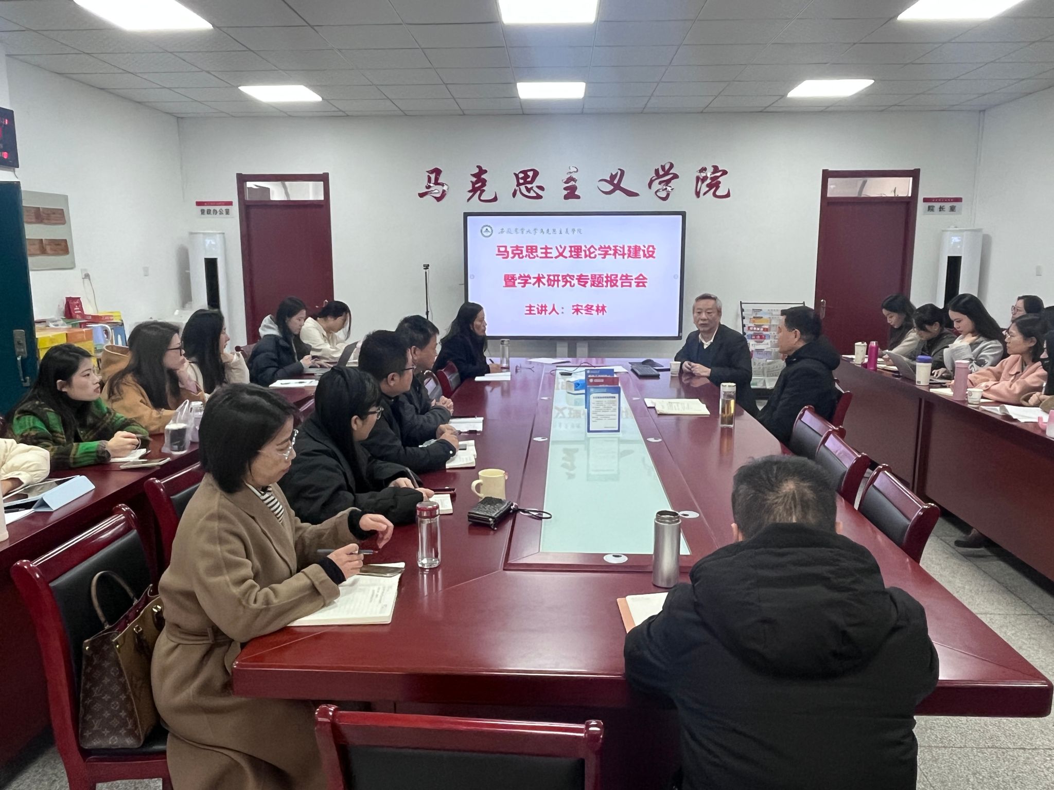 本网讯 11月13日上午,吉林大学马克思主义学院博士生导师宋冬林教授来我院开展了马克思主义理论学科建设暨学术研究专题报告。会议由学院党委书记孙超主持,马克思主义学院部分教师和研究生出席会议。