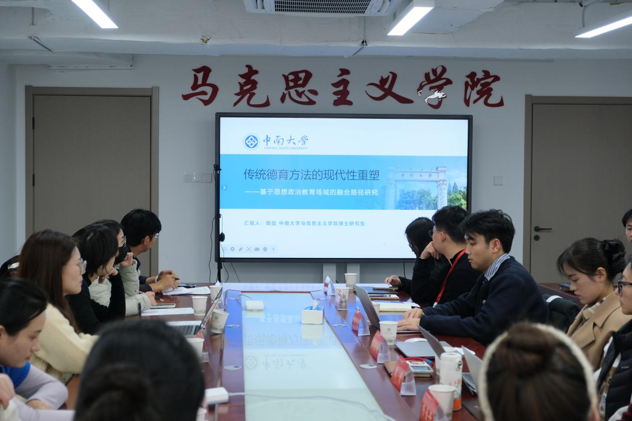 此外,重庆大学博士生祁叶达、胡倩,中南大学博士生撒磊,中国地质大学博士生张雨冰、赵晨希等也围绕网络思想政治工作、人工智能与思政双向赋能、传统德育方法的现代性重塑、青年“治愈型消费”以及中国共产党形象建构的叙事逻辑等议题进行汇报,展现出扎实的理论功底与鲜明的时代意识。