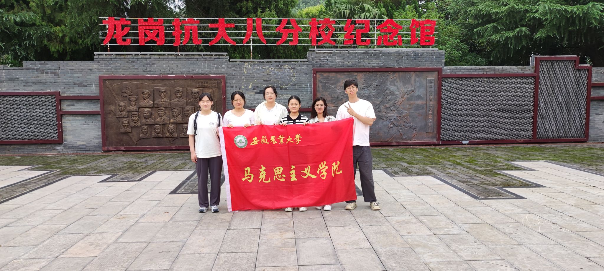 本网讯 习近平总书记指出“要充分运用红色资源,深化党史学习教育,赓续红色血脉”,弘扬革命文化,形成以伟大建党精神为源头的中国共产党人精神谱系。龙岗抗大八分校纪念馆是传统文化、革命文化、红色基因的传承之地,是学习中共党史、新中国史、改革开放史、社会主义发展史和中华民族发展史的重要场所。7月2日至7月4日,安徽农业大学马克思主义学院马克思主义理论专业研究生前往滁州市天长市龙岗抗大八分校纪念馆,寻访抗大印记,用红色领航青春。