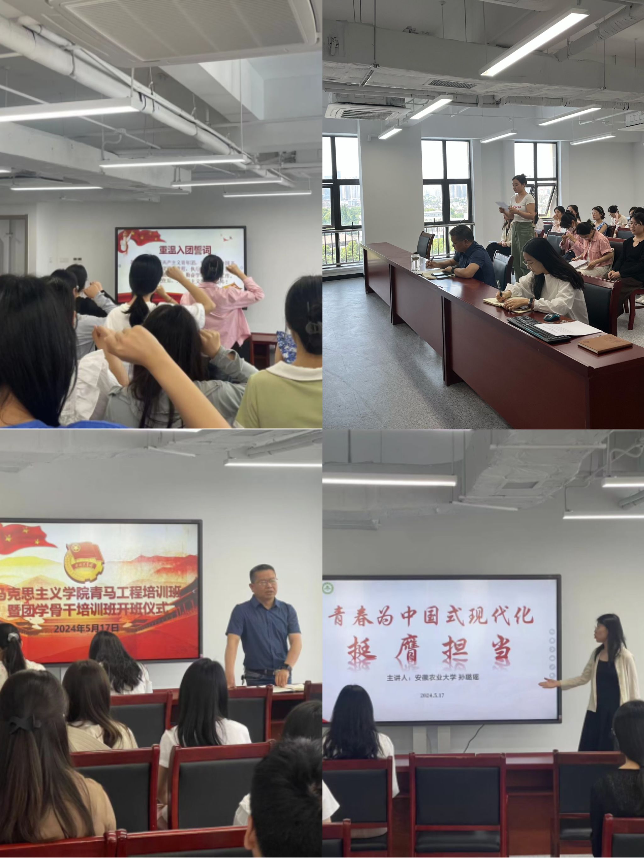 培训班开班仪式结束之际,袁修雨对此次开班仪式作总结动员讲话,希望各位学员要提高政治站位,深刻领会此次培训的重要意义,强化理论学习,增强才智本领,牢记习近平总书记五四青年节的嘱托与寄语,以实际行动争做“有理想、敢担当、能吃苦、肯奋斗”的新时代安农青年。会议还就24届毕业生毕业就业情况针对性地对所有参会人员进行了就业观念引导和就业规划指导,为学院25届毕业生今后更好的择业就业进行提前引导规划。开班仪式结束后由学院宣讲团团长孙璐瑶面向全体培训成员开展了主题为“青春为中国式现代化挺膺担当”的主题团课宣讲。(文图/编辑/陈晓雨 预审/孙刘琴 审核/袁修雨)