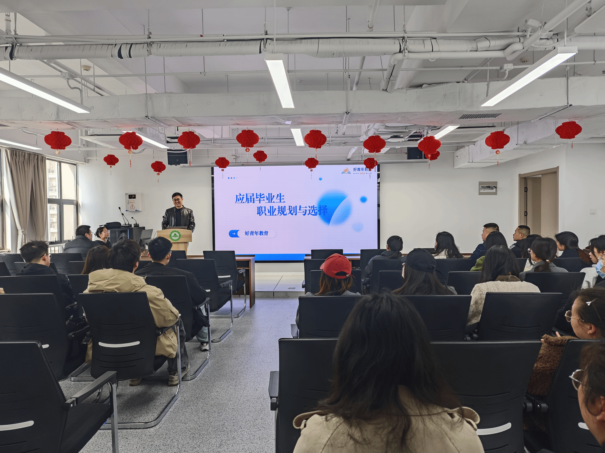本网讯 为增强我院学生职业生涯规划能力,助力学子精准锚定职业发展方向,3月10日下午,我院特邀资深公考从业者、校友侯勇及好青年教育外宣负责人王坦诚在学院1009开展“应届毕业生职业规划与选择”专题讲座。本次活动由学院党委副书记、纪委书记袁修雨主持,毕业班全体研究生参加。