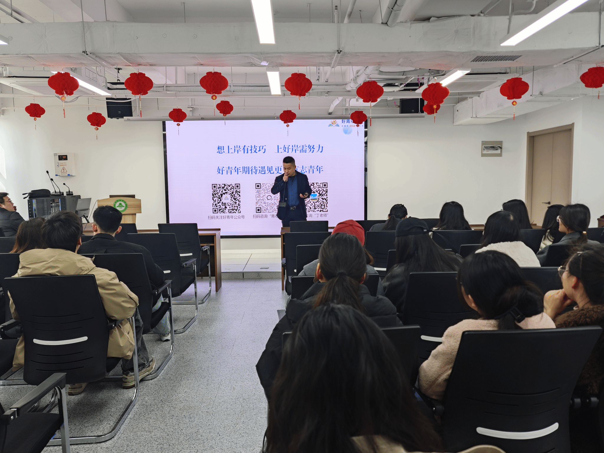 会上王坦诚主要围绕摸清行业发展状况、适应行业需求所需特质、理论与实践结合等方面展开讲解,旨在助力同学们明确就业目标,合理规划职业生涯。随后,校友侯勇为同学们分享了切实可行的求职策略,他强调谋定而后动,鼓励同学们通过大量高质量的练习提升应试能力;同时介绍了陪伴式备考模式,倡导同学们在备考过程中相互支持、共同进步。