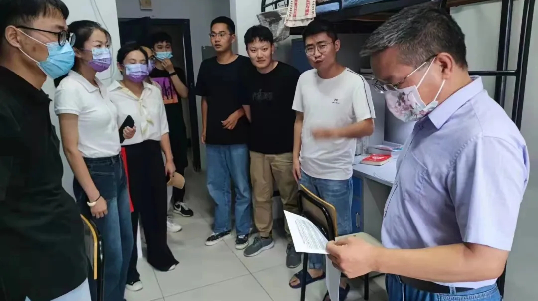 9日下午,学院领导、辅导员一行来到了新生宿舍进行走访慰问。他们向2022级新生表达了真切的问候,叮嘱学生在适应新环境的同时要提高警惕,预防电信诈骗,做好疫情防护措施,并鼓励新生要树立远大理想、明确学习目标、珍惜大好时光。