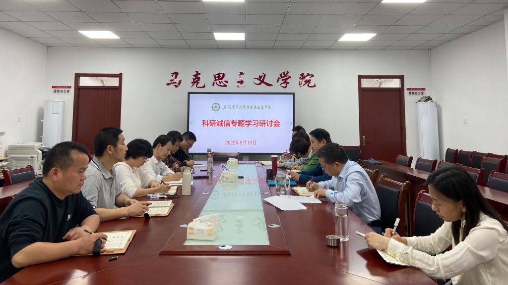 本网讯 5月19日下午,马克思主义学院召开研究生导师会议,就科研诚信、研究生培养等进行专题学习研讨,学院党委书记、院长黄洪雷主持会议。研工部(研究生院)副部(院)长姜家生,学院党委副书记、纪委书记、副院长袁修雨及部分研究生导师参加了学习研讨。
